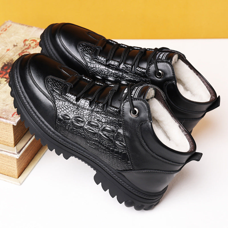 Bársony vastagságú férfi téli bőrcipő