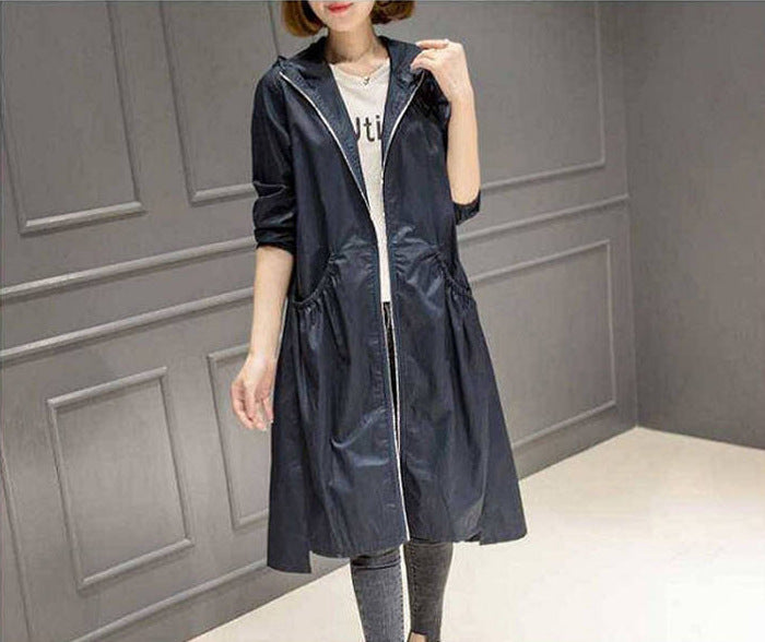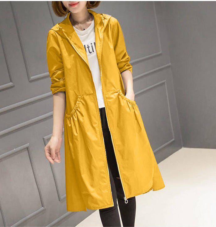 2023-as, középhosszú, kapucnis, szélálló női kabát
