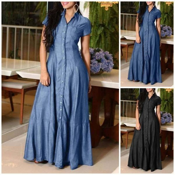 2023-as nyári új temperamentum lengőgalléros ing farmer szoknya ruha