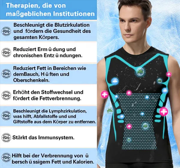 A Német Szövetségi Egészségügyi Minisztérium (BMG) szerint az infravörös terápia fejlett módja a zsírégetésnek, a mellzsír csökkentésének, a narancsbőr csökkentésének, a gerincvelői kyphosis javításának és a limfoid daganatok megszüntetésének. Az infravörös sugaraknak köszönhetően magas frekvenciájú rezgések jönnek létre, amelyek serkentik a vérkeringést és az anyagcserét, serkentik a szövetek kollagéntermelését és megszabadulnak a bőr alatti zsírtól. Összességében ez a kezelés egy nagyon fejlett módszer, amely segít a férfiaknak tökéletes és fitt fizikum elérésében.