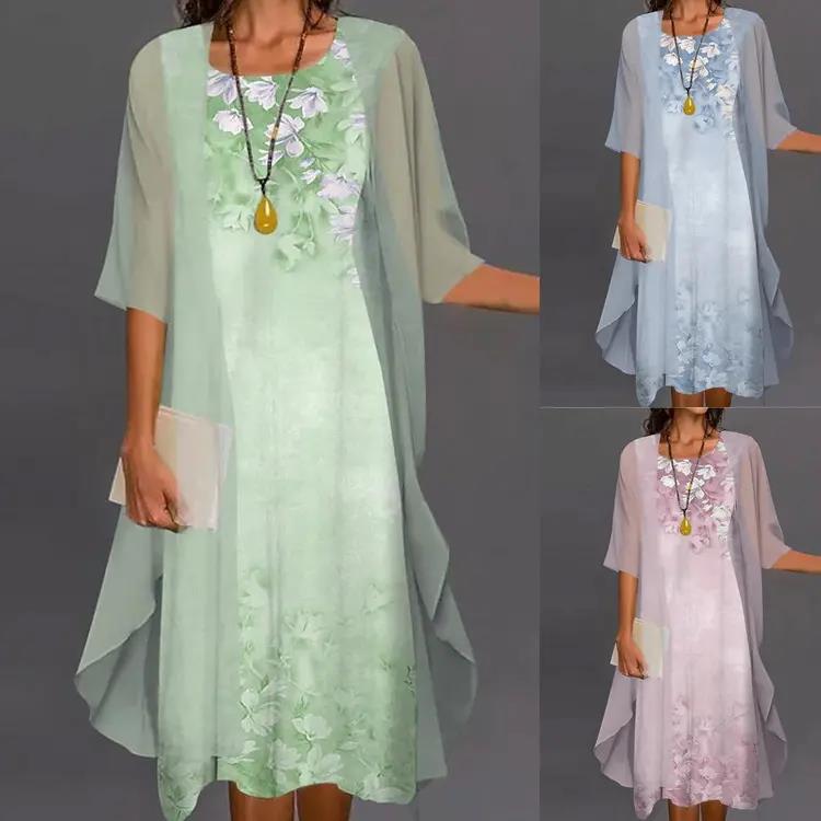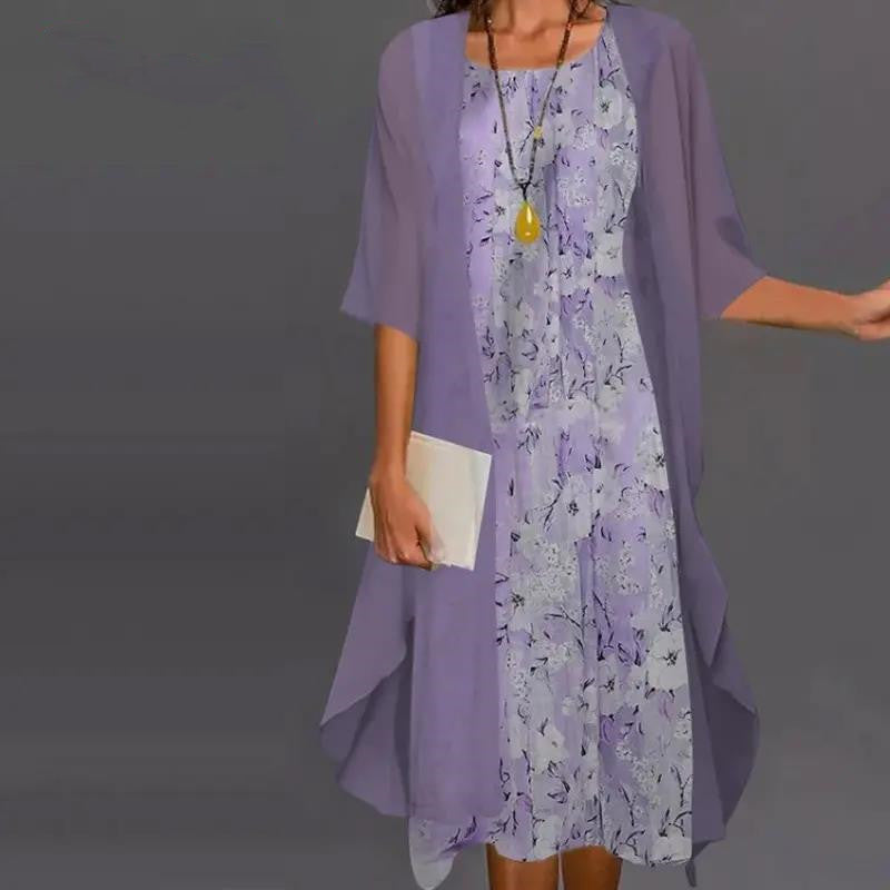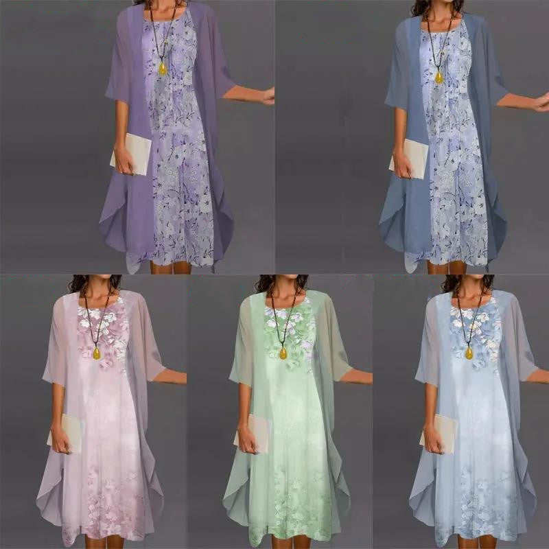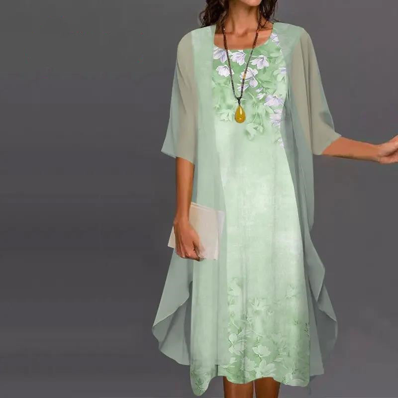 Rövid ujjú, nyomtatott sifon kétrészes ruha