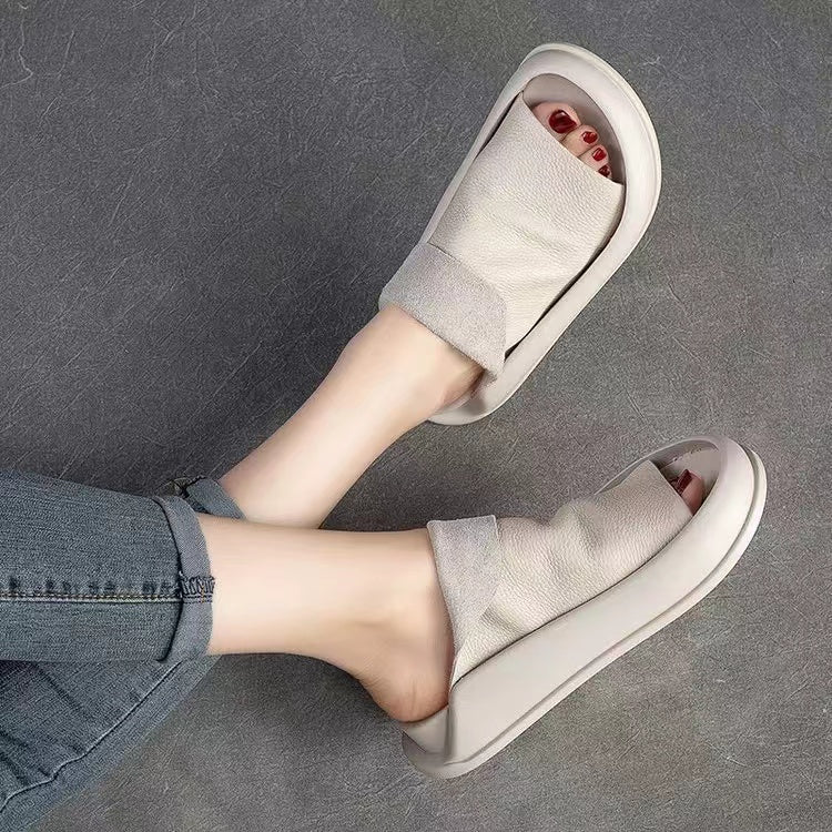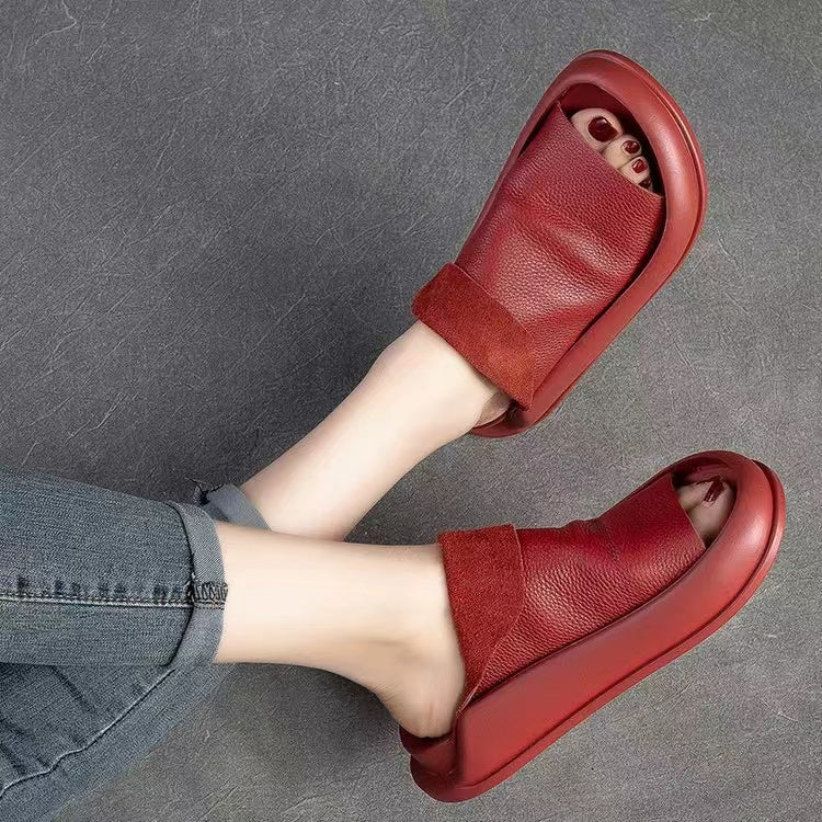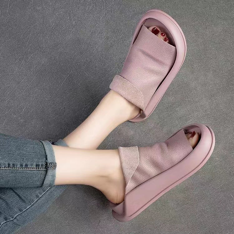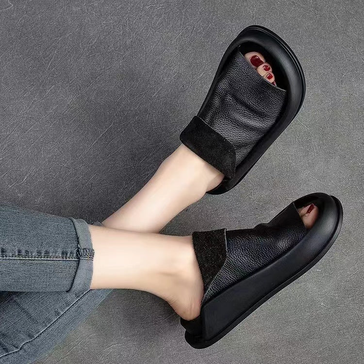 2023-as új, retro puha bőr egyszínű platformszandálok