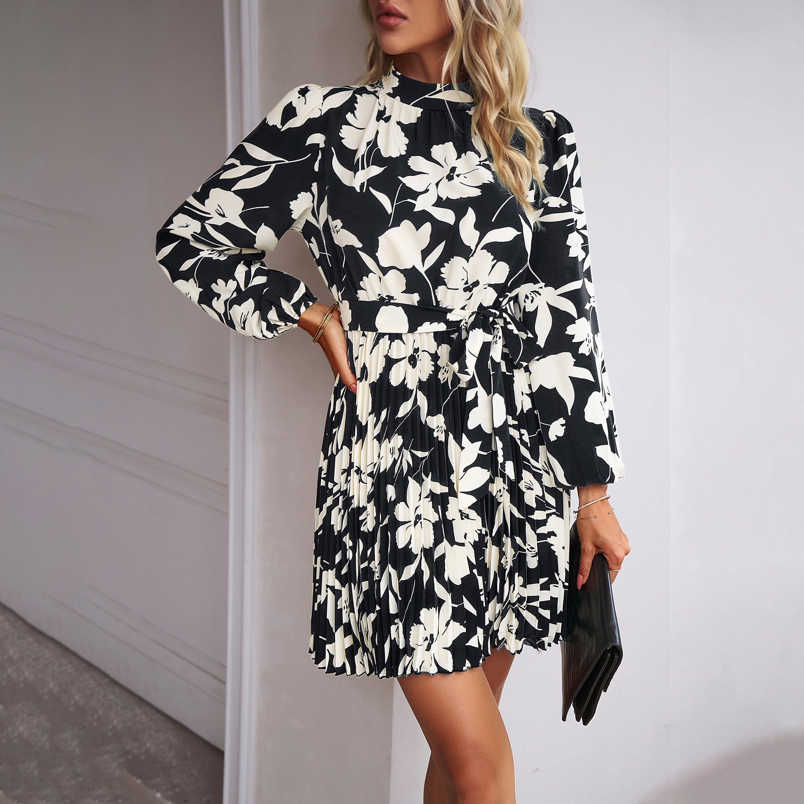 2023-as őszi és téli lezser hosszú ujjú redős környakú szoknya