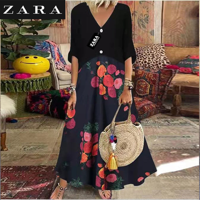ÚJ NYÁRI HOSSZÚ ZARA RUHA V-NYAKAL