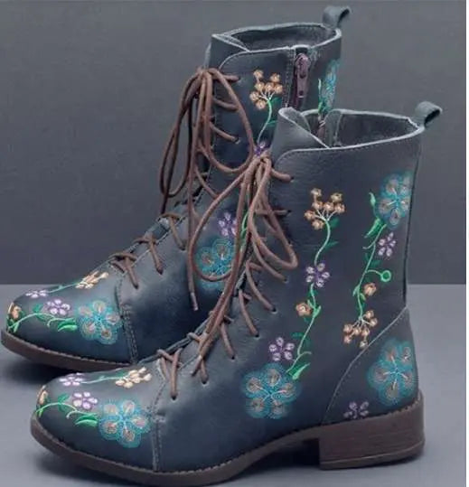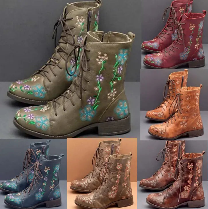 【35-43】 2023-as új őszi és téli hímzett női csizma.