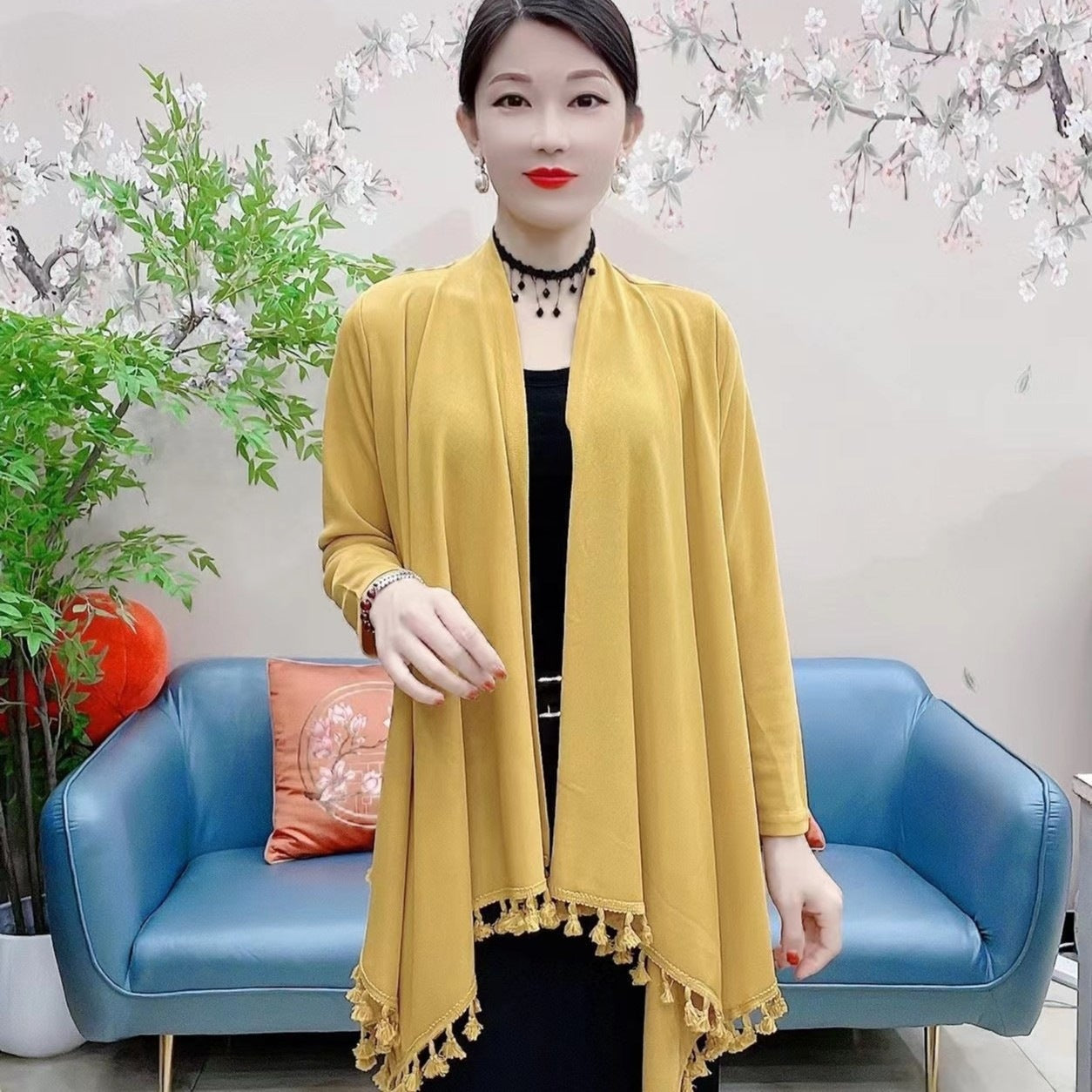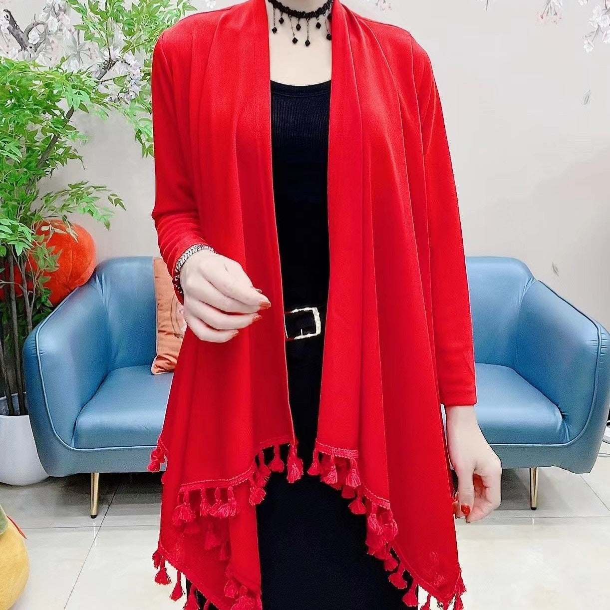 Új női molett őszi-téli sál meleg, széles rojtokkal