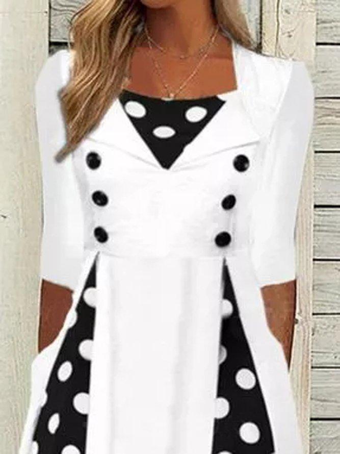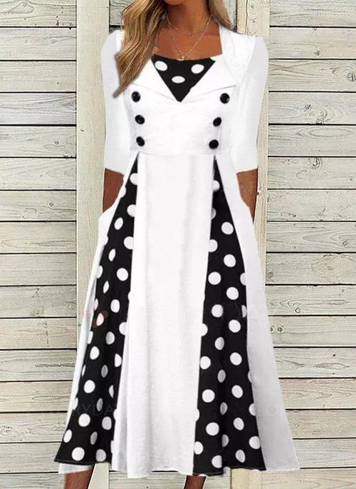 Alkalmi, négyszögletes nyakú pöttyös szövésű ruha