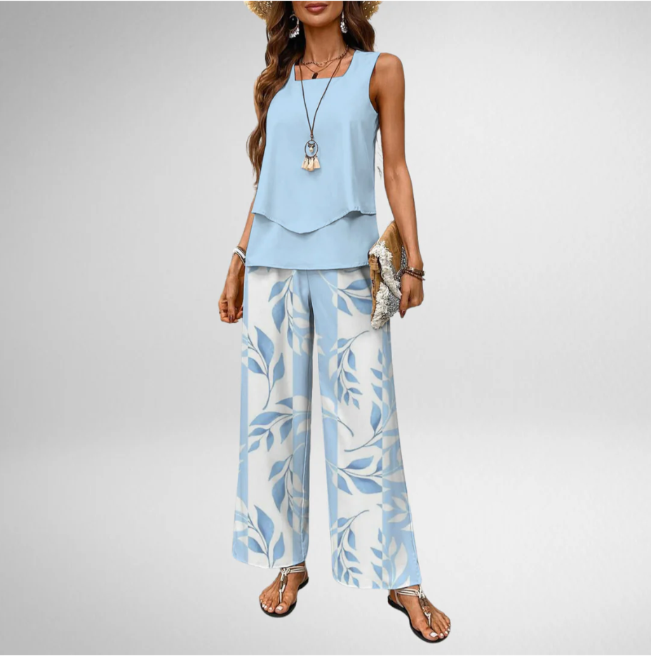 Ez az elegáns nyári szett könnyed stílust és kényelmet visz a meleg időjárásra termett ruhatáradba. Sikkes és előnyös fazonjának köszönhetően tökéletes mindenhez, a hétköznapi kiruccanásoktól az elegánsabb alkalmakig. Maradj laza és stílusos, évszaktól függetlenül.