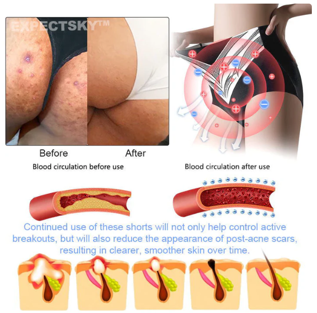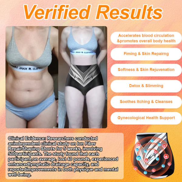 A negatív ionokat felszabadító titánszálak segítségével a rövidnadrág semlegesíti a szabad gyököket, csökkenti az oxidatív stresszt és elősegíti a méregtelenítést, amelyek kulcsfontosságúak a hegek, striák és pattanások csökkentésében, miközben enyhítik a nőgyógyászati tüneteket. A vizsgálatok két hét alatt mutatják meg az eredményeket.