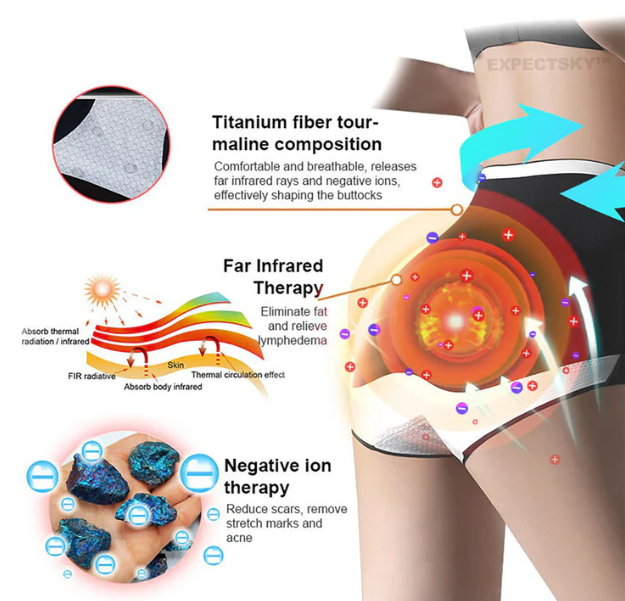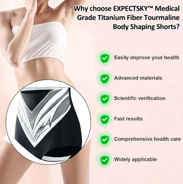Az EXPECTSKY™ Tourmaline Magnetic Shapewear javítja a keringést, csökkenti a gyulladást és serkenti a zsíranyagcserét a távoli infravörös sugarakkal. A titánrostok negatív ionokat szabadítanak fel, hogy segítsék a méregtelenítést és a sejtregenerációt. Ezek a rövidnadrágok a zsír felhalmozódását, a nyiroködémát, a varikózus vénákat célozzák meg, és segítenek csökkenteni a hegeket, striákat, pattanásokat és nőgyógyászati problémákat az általános egészség megőrzése érdekében.