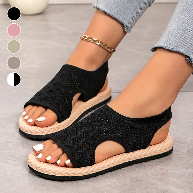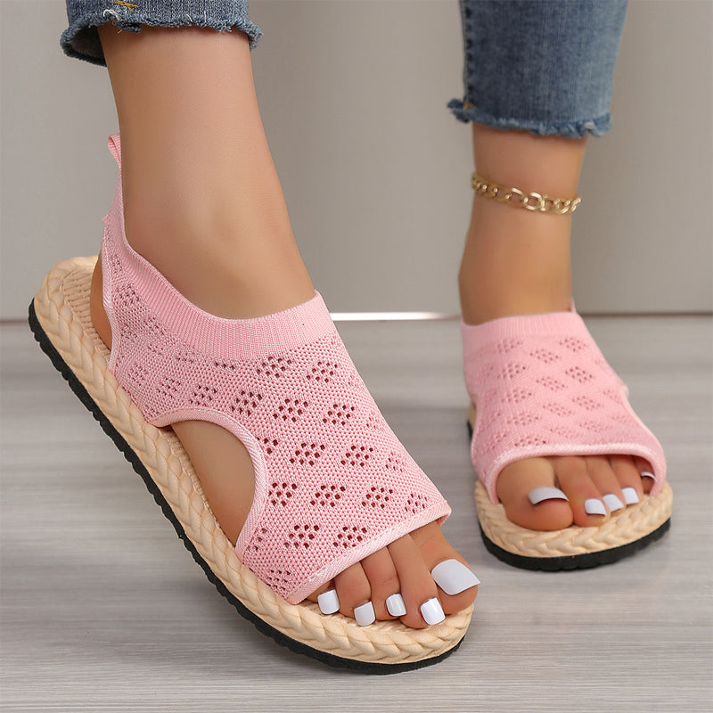 Női hálós kötött, nyitott orrú lapos szandál