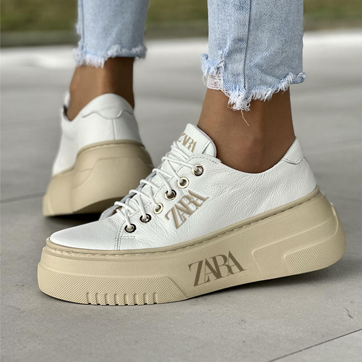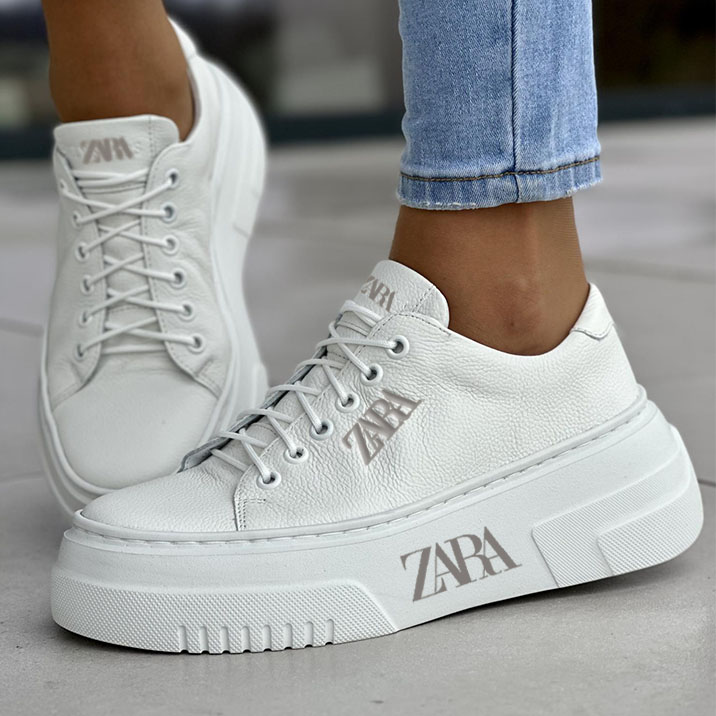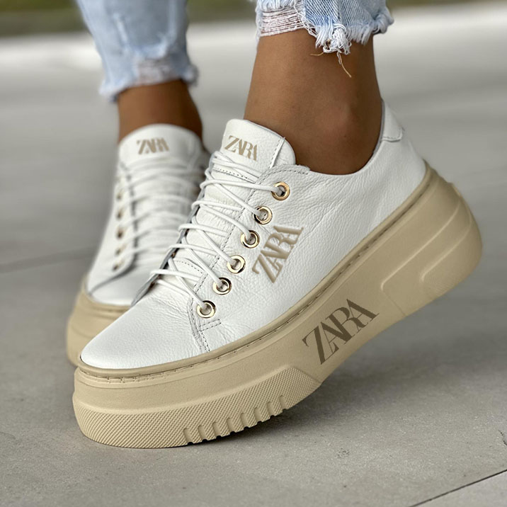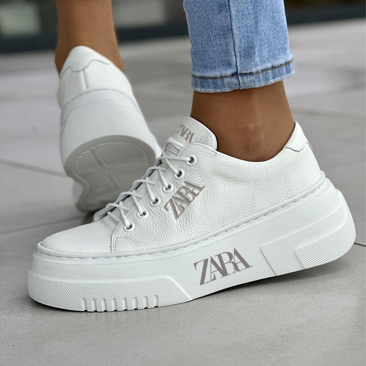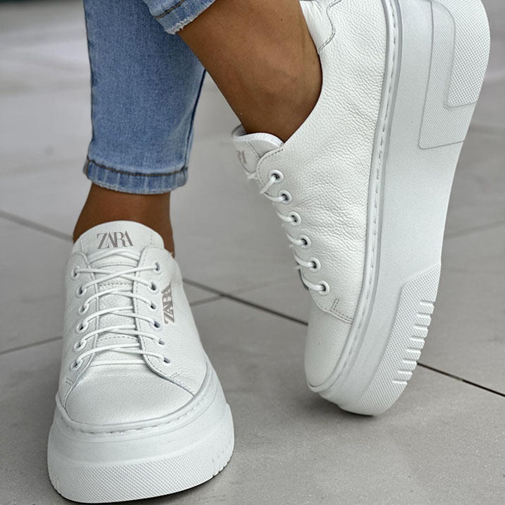 Női ZARA magas talpú sportcipő, sima és finom bőrből, könnyű és lélegző