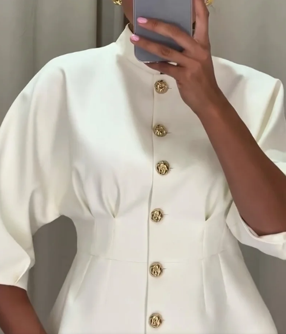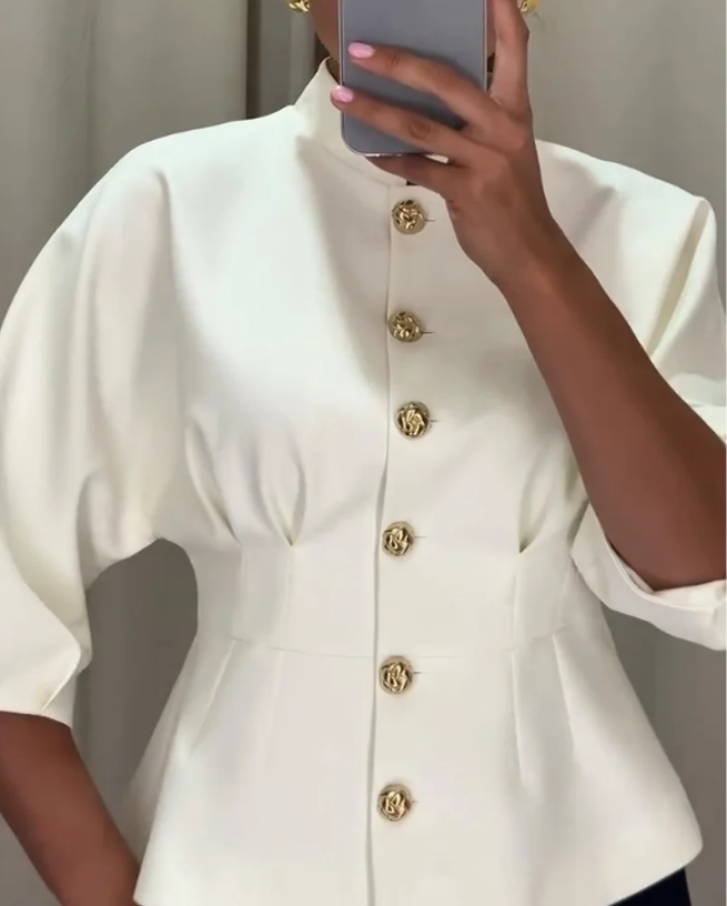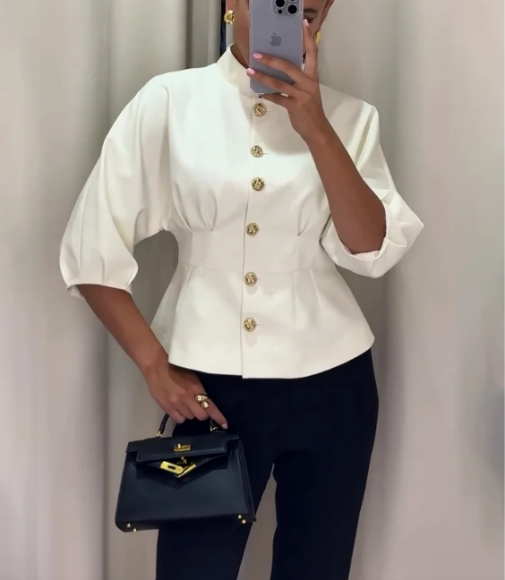 Elegáns ing állógallérral és magas derékkal
