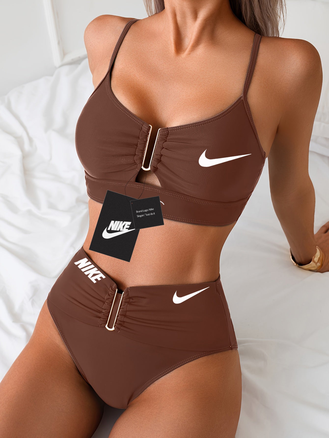 "Elegáns, magas derekú bikiniszett elöl gombos záródással és oldalsó cipzárral, eleganciát és divatot sugároz."