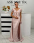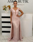 Divatos, hasított, szexi ruha, az elegancia és a szexiség tökéletes egyensúlyával✨ A V-nyak kiemeli a bájos vonalakat, a sál ujjú kialakítás kifinomultságot kölcsönöz, a teljes flitteres hímzésnek megvannak a maga kiemelései, a hasított szoknya pedig egy csipetnyi szexiséget rejt.