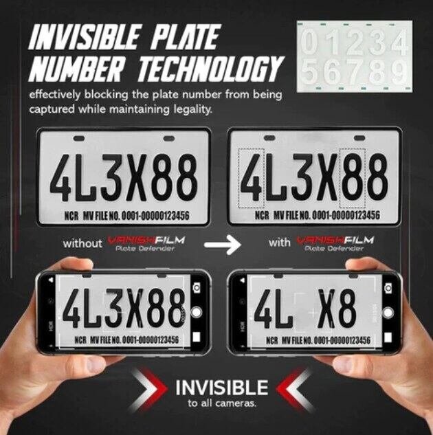 A legmodernebb technológiával felszerelt VanishFilm Plate Defender megbízható megoldást kínál a közlekedési kamerák általi észlelés elkerülésére. Ezek a rejtett matricák láthatatlan páncélként működnek az infravörös és látható spektrumú villanások ellen, így a rendszámtábla szimbólumok gyakorlatilag észrevehetetlenek az infravörös radarok vagy a látható spektrumú vakukamerák számára.