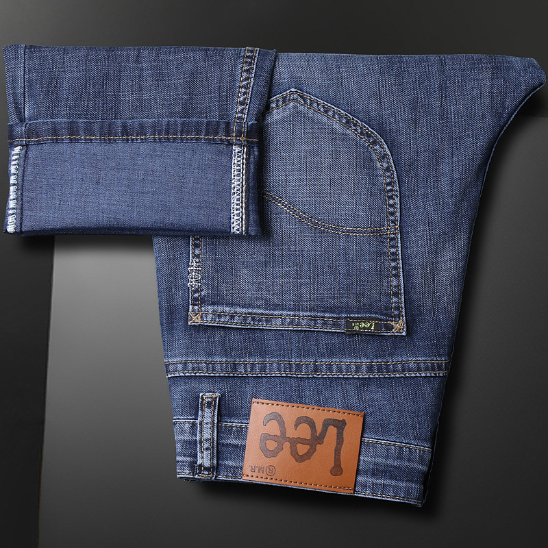 Férfi farmer őszi és téli vastagított egyenes szárú bő férfi nadrág