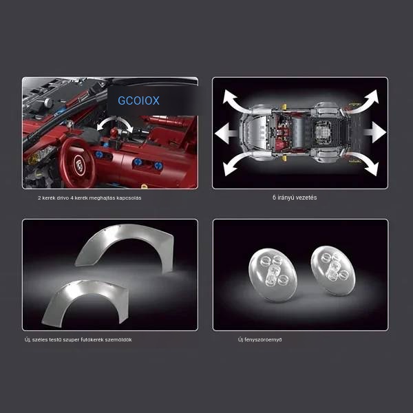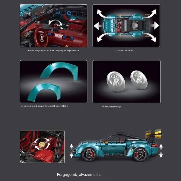 Função - Suporta modo de controle remoto duplo com telefone celular e controle remoto, controle de elevação do chassi e trava da porta, interruptor 2WD e 4WD e spoiler traseiro personalizado, abertura do capô e porta-malas e conexão do motor. Para os amantes de carros esportivos e amantes de blocos de construção, definitivamente vale a pena comprar um kit de construção de série de modelos de brinquedos para carros.