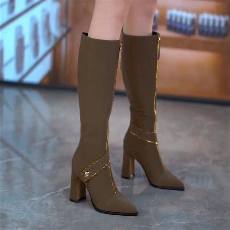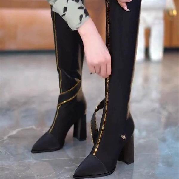 TÉRDHOSSZÚ –   Ezt a csizmát úgy tervezték, hogy elérje a térdét, és hízelgő és stílusos sziluettet kínál, amely különféle ruhákhoz illeszkedik. Párosítsa őket szoknyákkal, ruhákkal vagy szűk farmernadrágokkal, hogy sokoldalú megjelenést biztosítson, amely zökkenőmentesen változik reggelről estre.