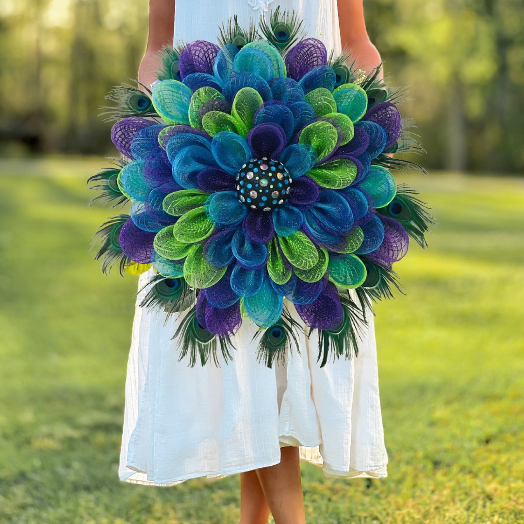 🎁 Beszélj a pávatollakról! 🎁 Ez a gyönyörű pávakoszorú sok kékeszöld, lila kék és smaragdzöld színnel vonzza a szemet, valódi pávatollakkal. 🎈🎈 Világos kékeszöld golyók veszik körül ezt a koszorút egy gyönyörű üdvözlősarokkal a közepén. Ez a koszorú gyönyörűen mutatna a bejáratban, és kedves, szeszélyes látványt nyújtana vendégeinek. 💛💛