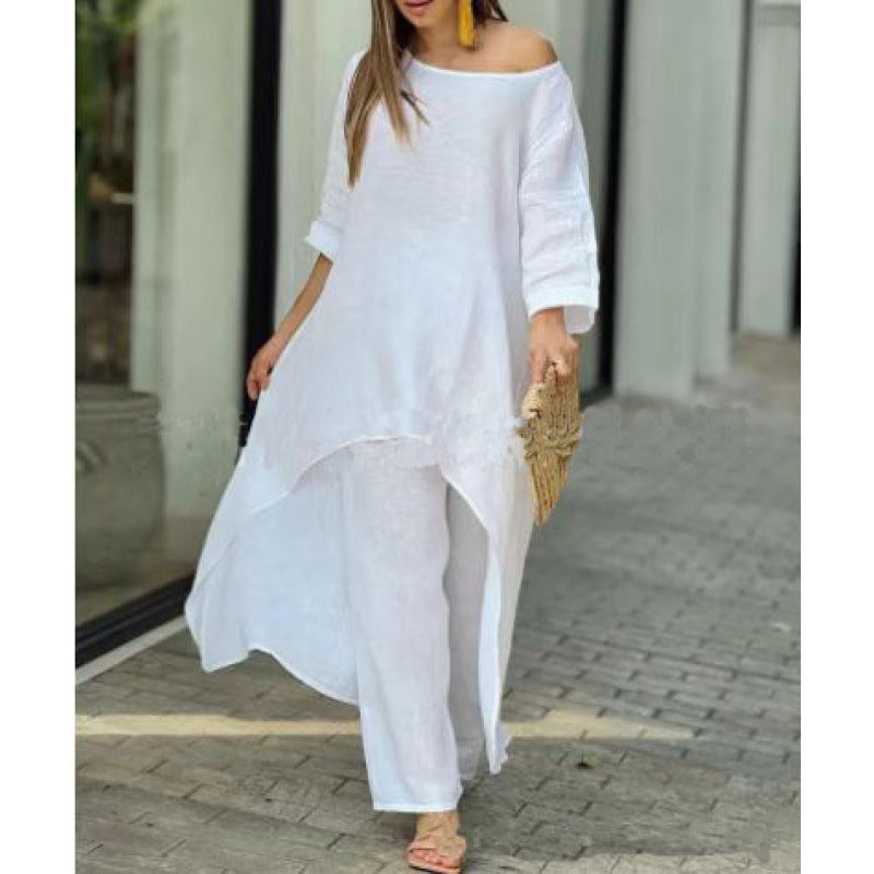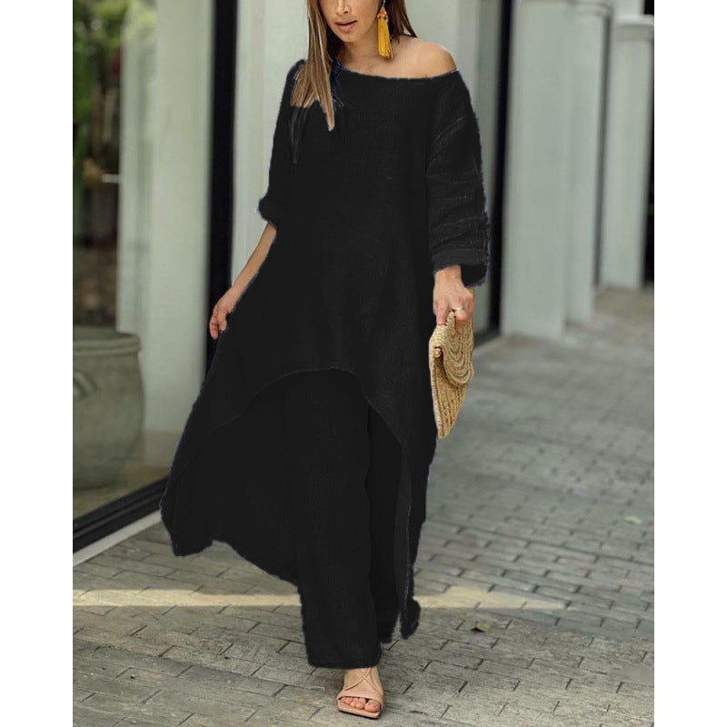 Alkalmi divat, molett szabálytalan öltöny, hosszú ujjú bő nadrág kétrészes öltöny