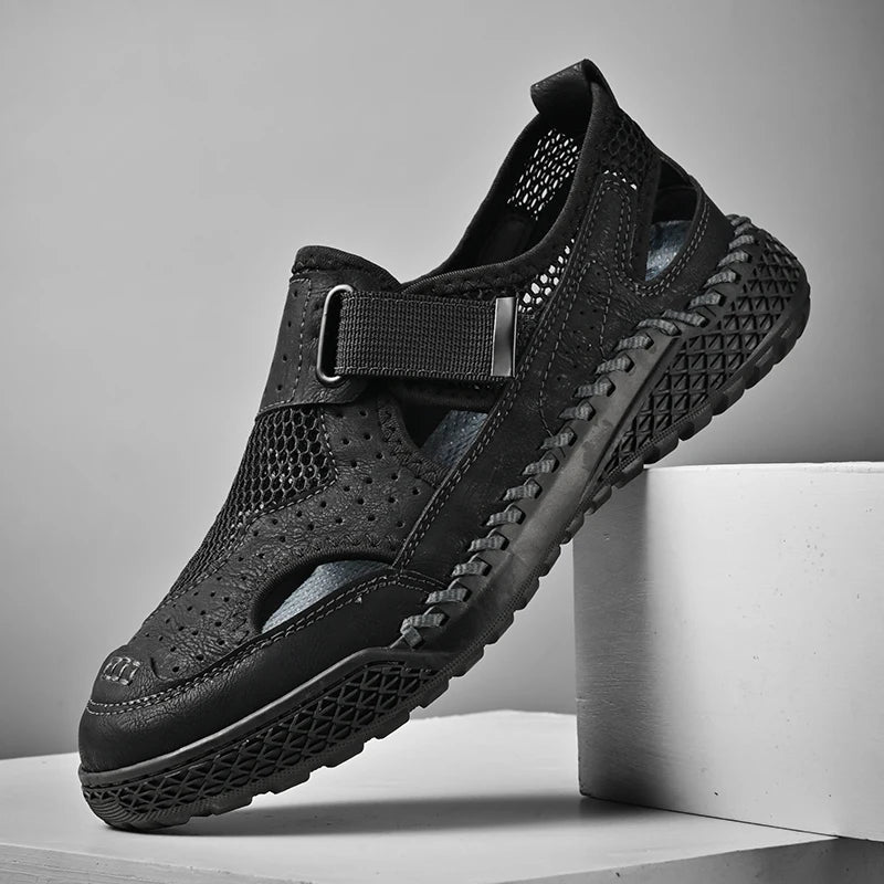 Meleg napokra és nehéz ösvényekre tervezve ezek a szandálok a strukturált kivágott bőr felsőrészt lélegző hálós panelekkel ötvözik, így fokozott légáramlást, párnázott tartást és stabil talpat biztosítanak a sima, biztos lépésekért.