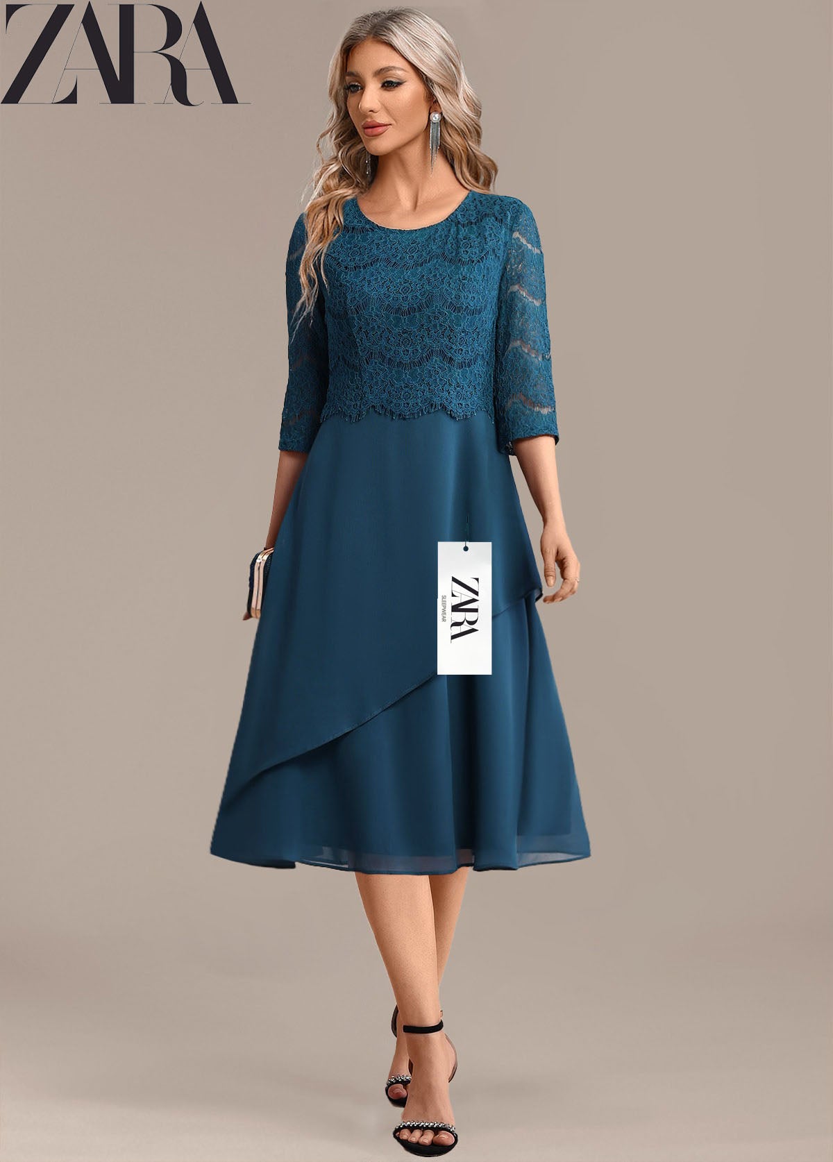 Új, divatos női ruha kerek nyakkivágással