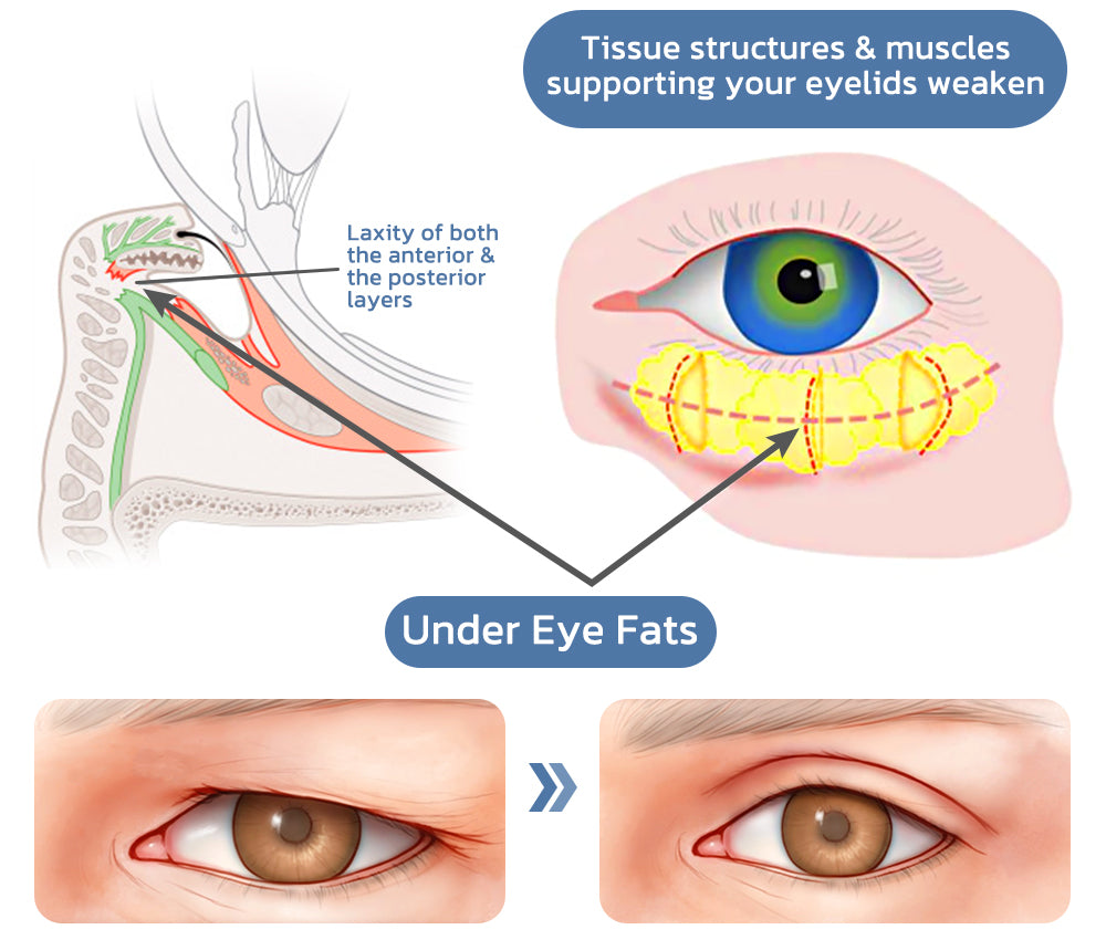 A szem alatti táskák akkor keletkeznek, amikor a szemhéjat tartó szöveti struktúrák és izmok gyengülnek. A bőr megereszkedhet, és a szem körül általában lévő zsír a szeme alatti területre kerülhet. Ezenkívül a szeme alatti tér folyadékot gyűjthet össze, így a terület duzzadtnak vagy duzzadtnak tűnik. Az OPENEYES Awaken Peptide Lifting Eye Gel kifejezetten olyan célpontra lett kifejlesztve, amely hatékonyan és természetesen csökkenti a szem alatti sötét karikák és táskák megjelenését .