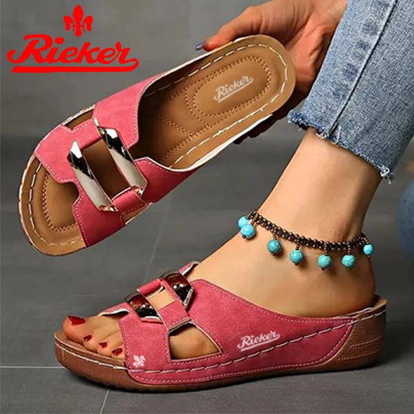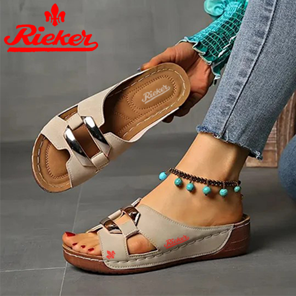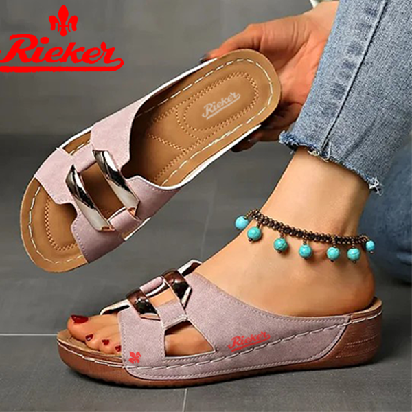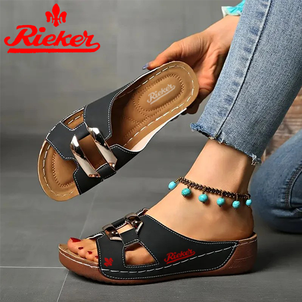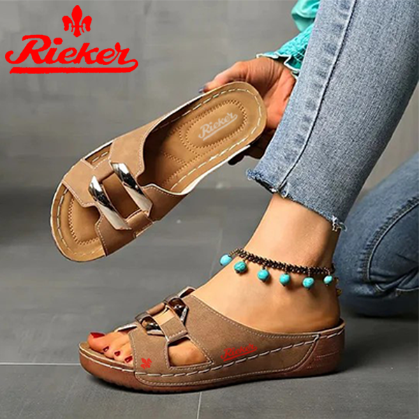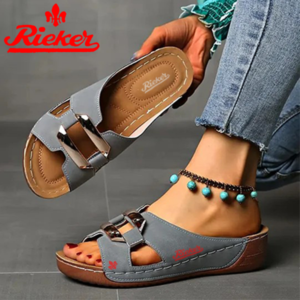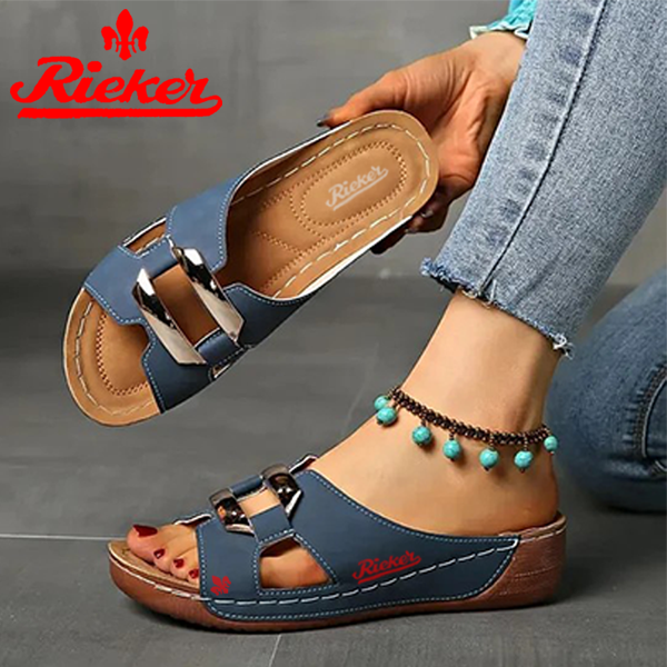 2025-RIEKER Új Női Bebújós Szandál Ékcsattal