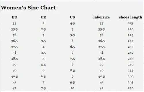 - Kérjük, tekintse meg a fenti táblázatot, hogy meghatározza a helyes méretet a láb hossza alapján.
