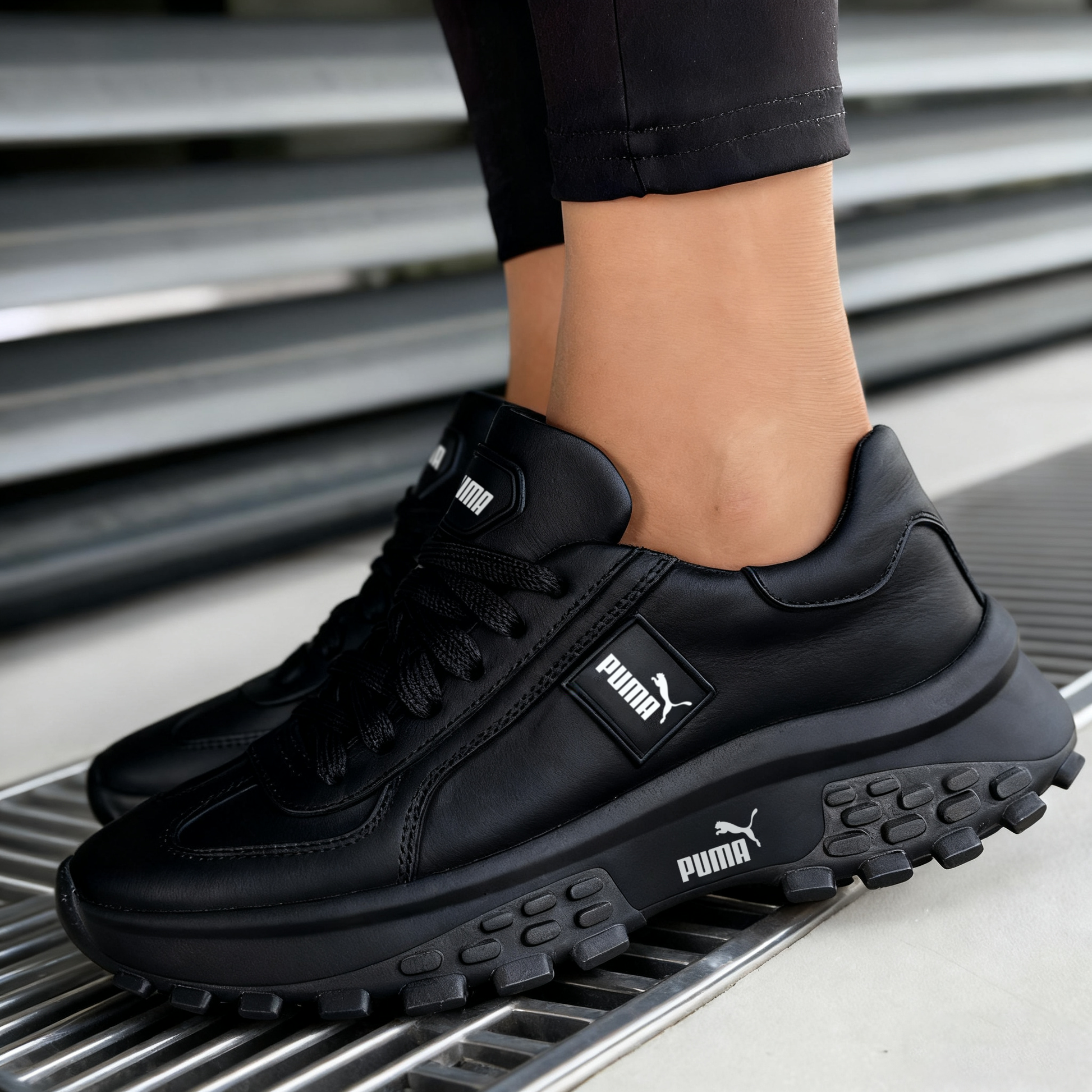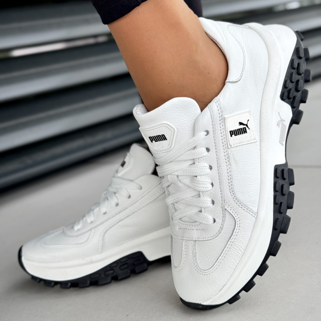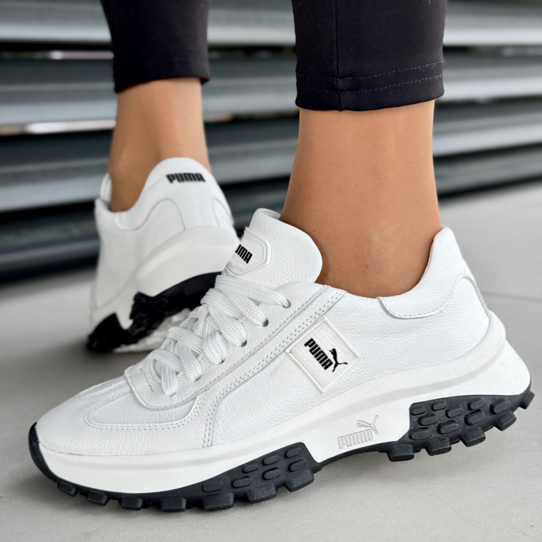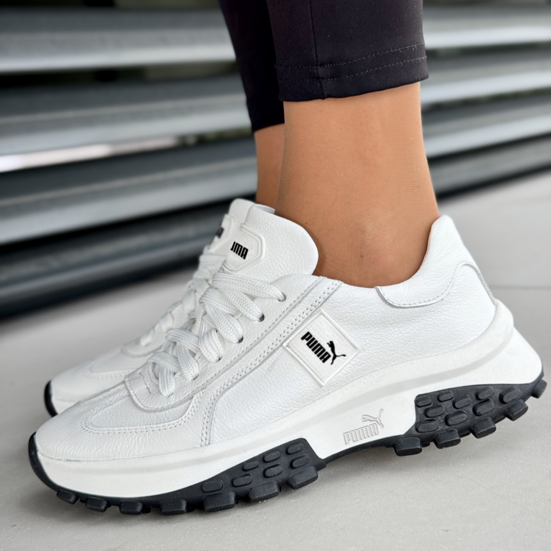 Puma női fehér bőrcipő, retró stílusban, kényelmes fekete talppal