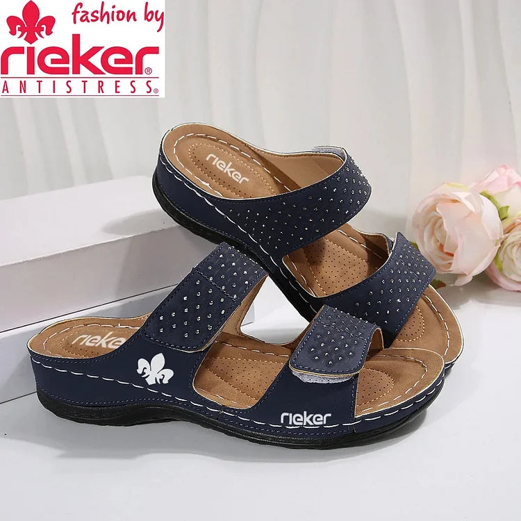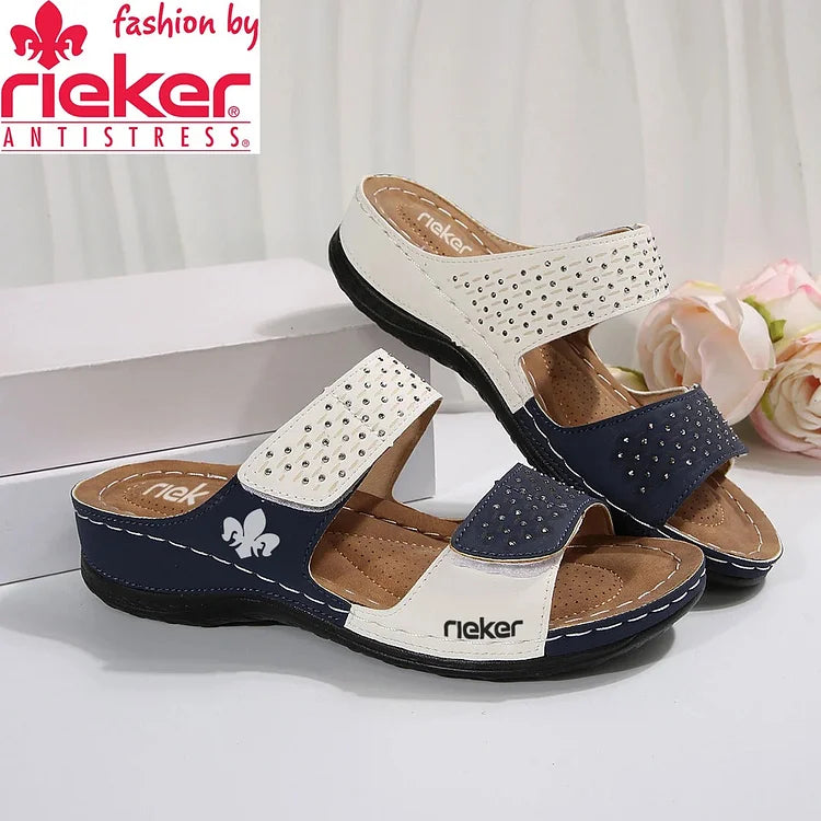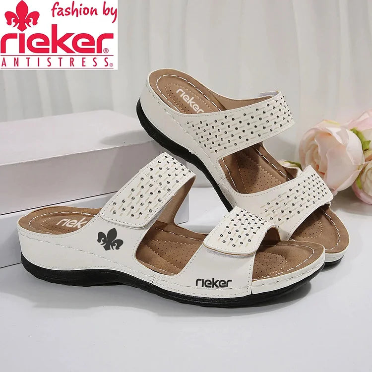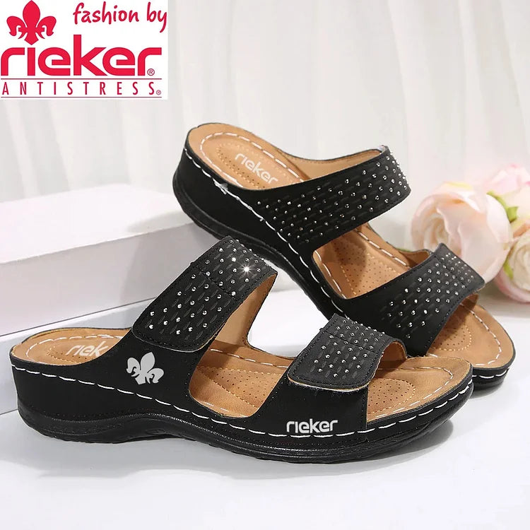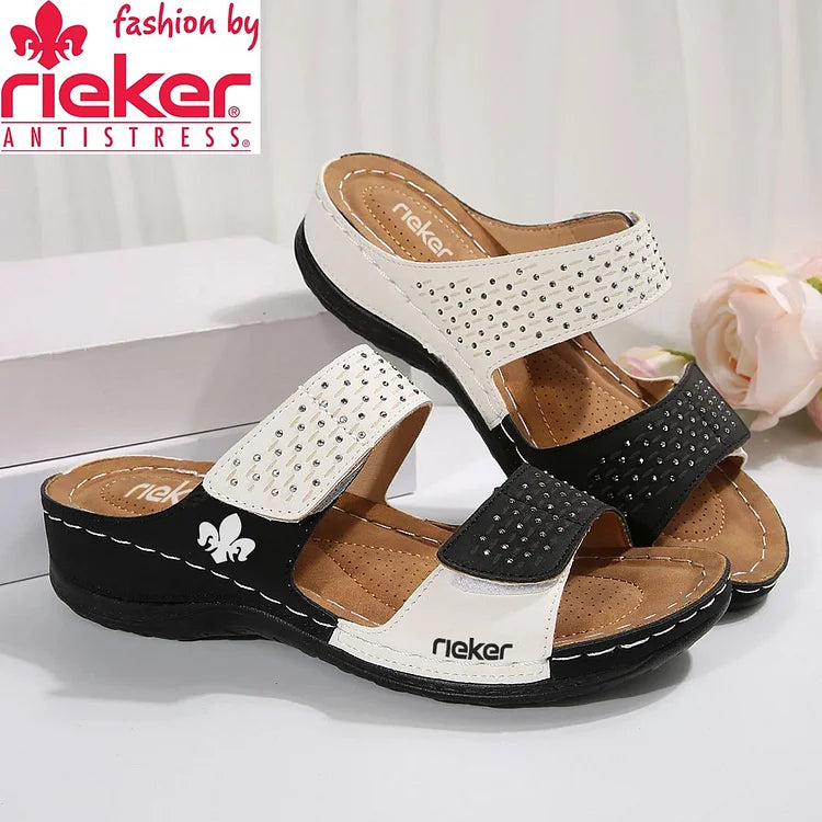 RIEKER@2025 Női nyári papucs vastag talppal és tépőzárral