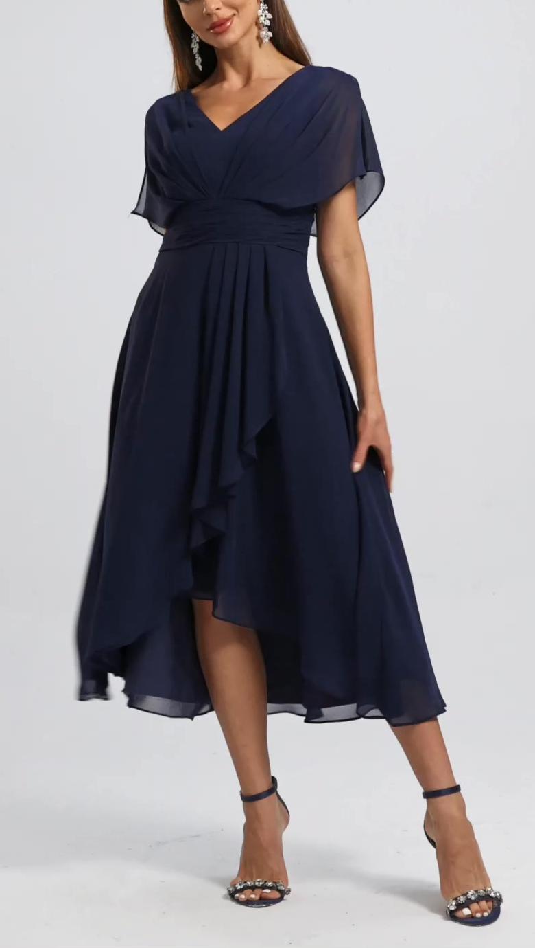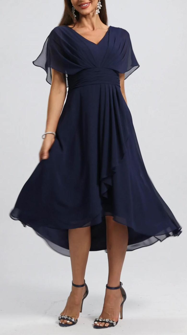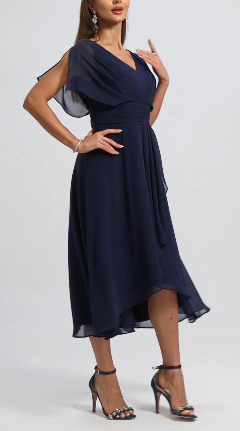 Női V-nyakú ruha sifonbetéttel