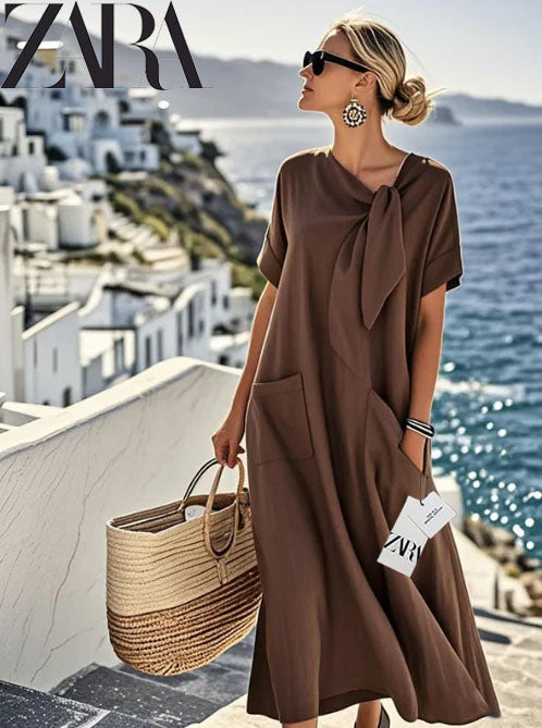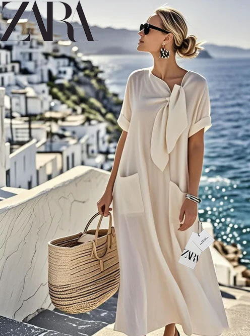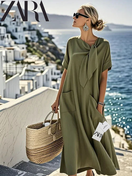 🌿 A ZARA új nyári érkezése – rövid ujjú, zsebes pamutruha.
