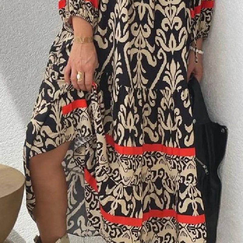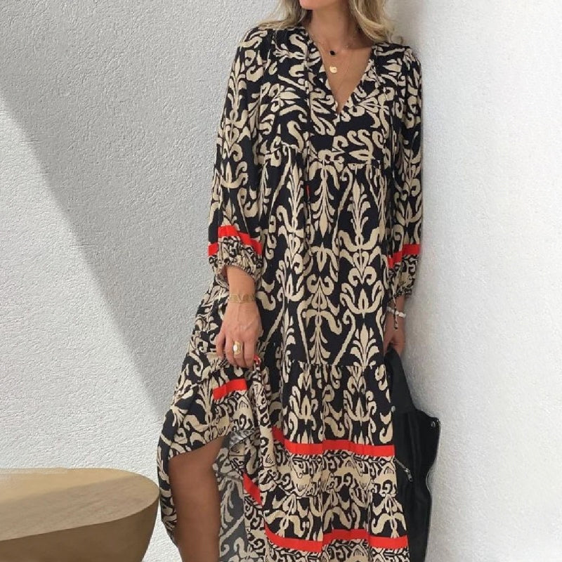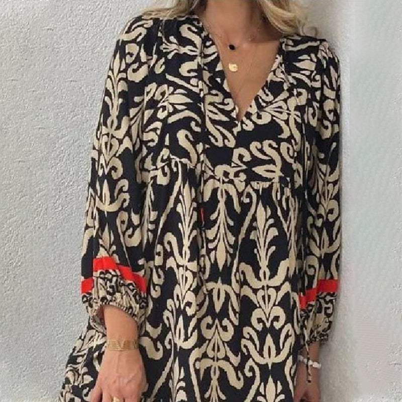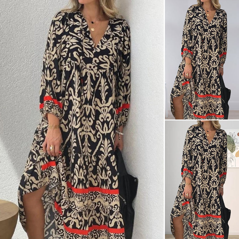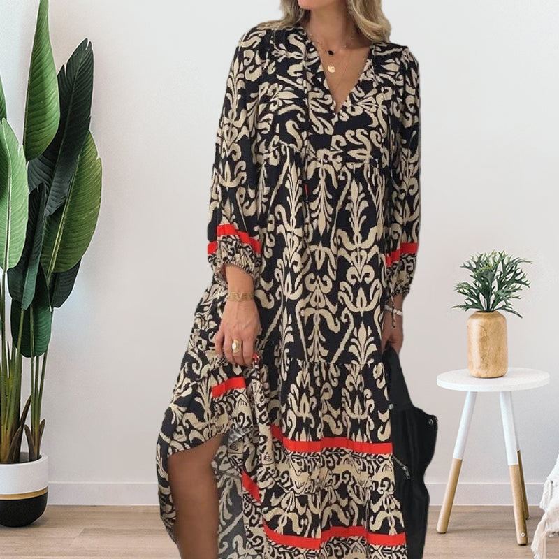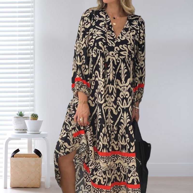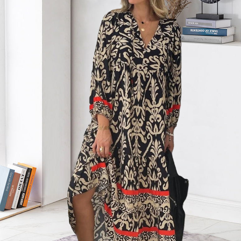 V-nyakú, hosszú ujjú virágos ruha