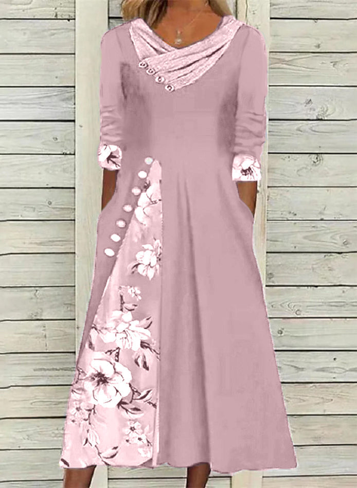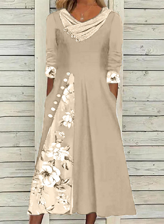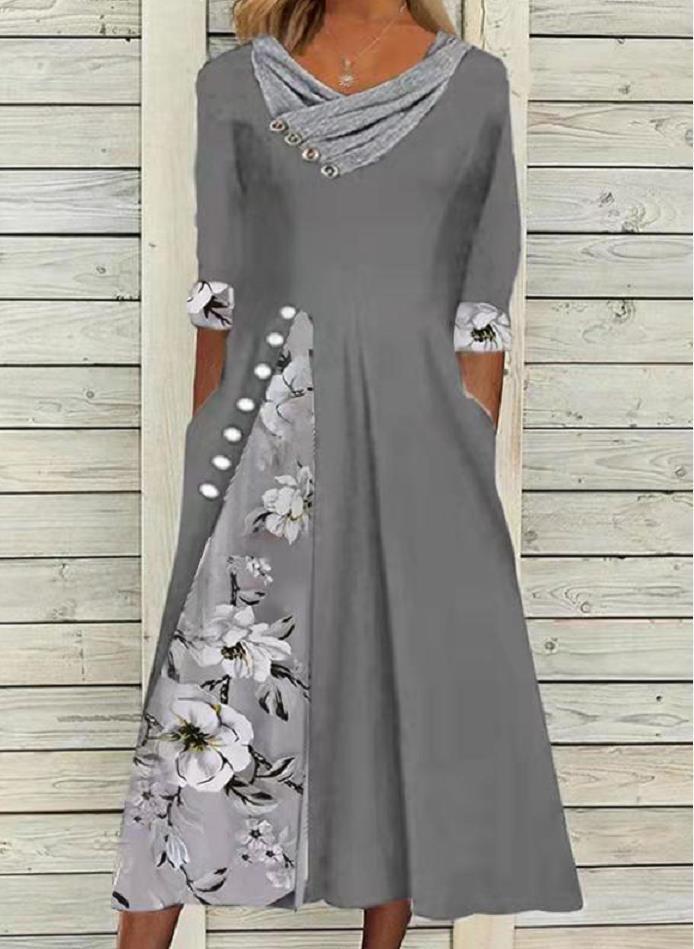 Virágos tunika V-kivágású Midi A-vonalú ruha