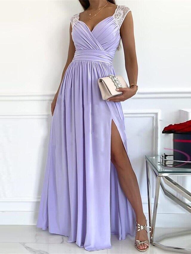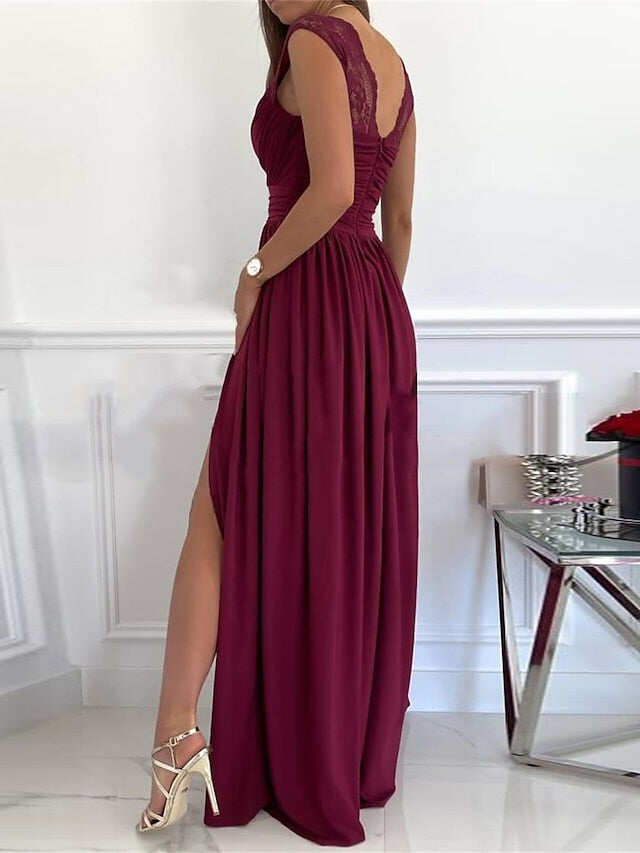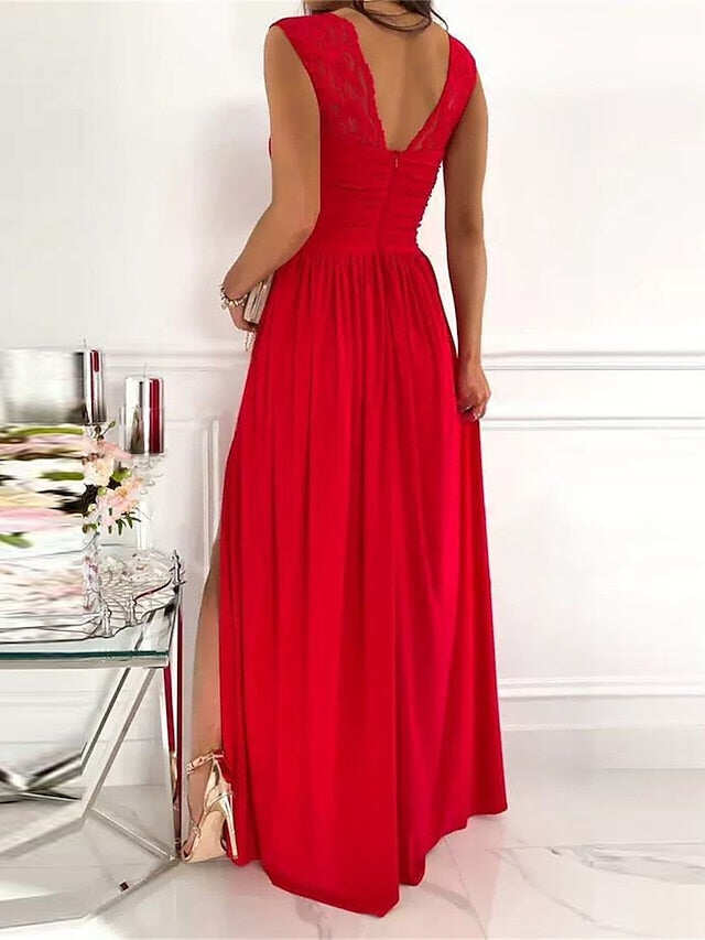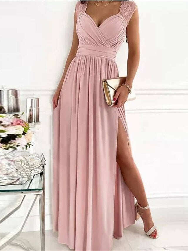 Nem: Nők , Stílus: Buli Divat Kifinomultság Elegáns ruha Fesztiválruha , Alkalom: Esküvői Vendég Strand Különleges alkalom Születésnap Kirándulás Karácsony , Nyaralás Este , Nyaralás , Ruha típusa: Swing ruha Parti ruhák fekete ruha piros ruha rózsaszín ruha , báli ruha esküvői vendég ruha estélyi ruha , nyakkivágás: V-nyakú , szövet: poliészter , minta: csipke hasíték redők , rugalmasság: mikro sztreccs , minta: egyszínű , évszak: ősz ősz tél tavasz , szabás típusa: normál szabás , ruha hossz típusa: maxi ruha, maxi ruha ,