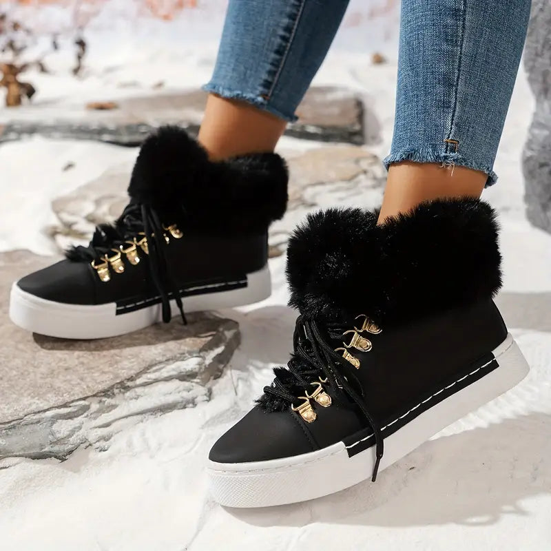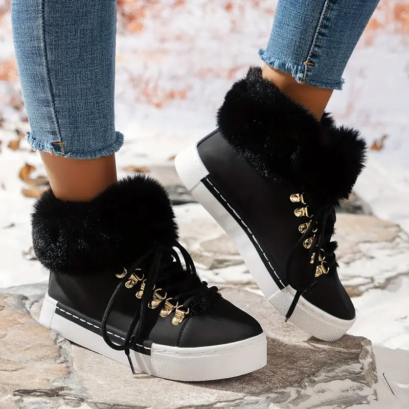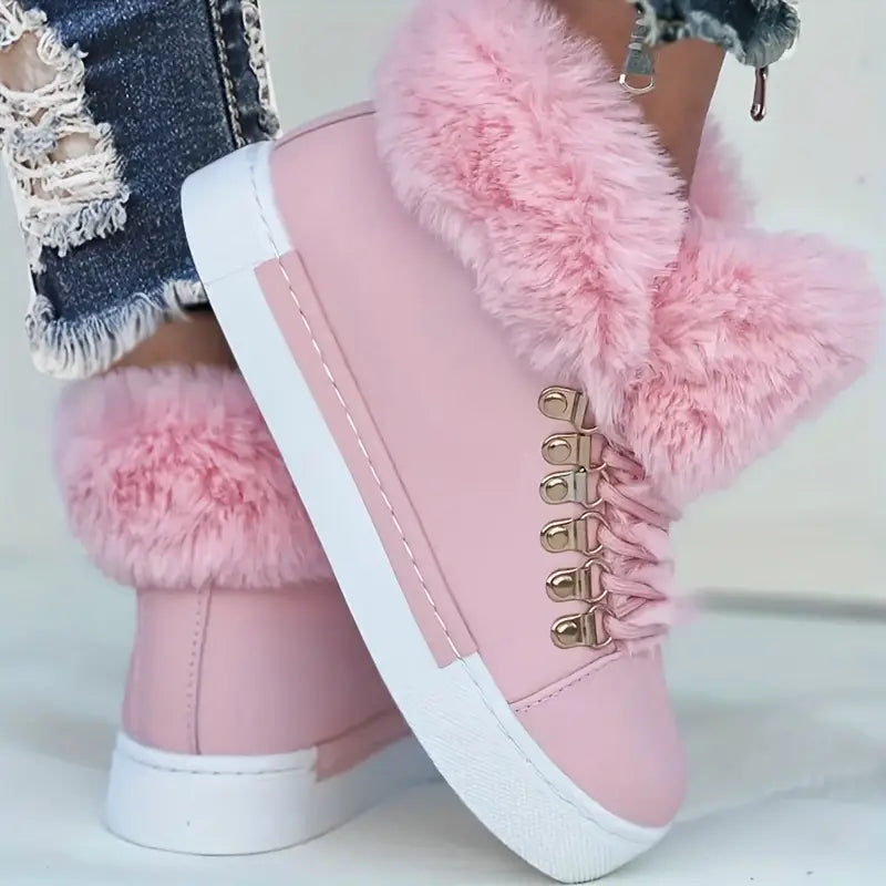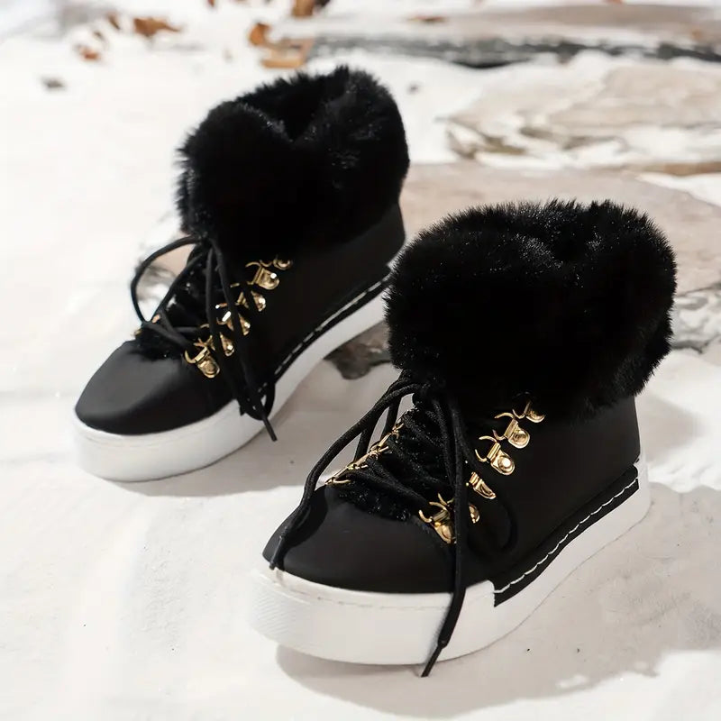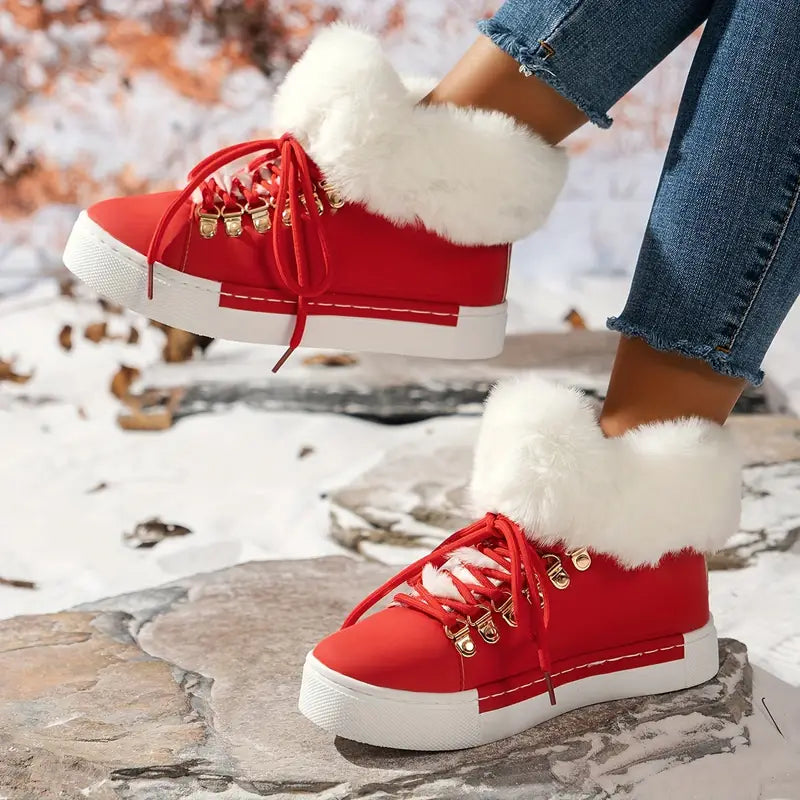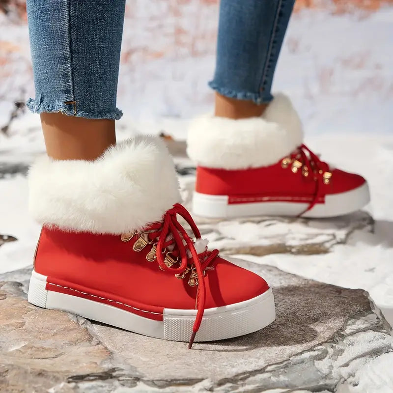 Trwałe, grube futrzowe, losowane, izolowane czerwono-syntetyczne, sznurkowe koronkowe buty śniegu zimowe