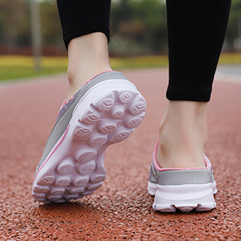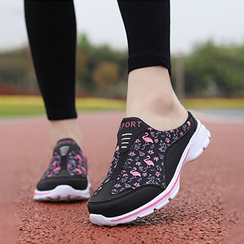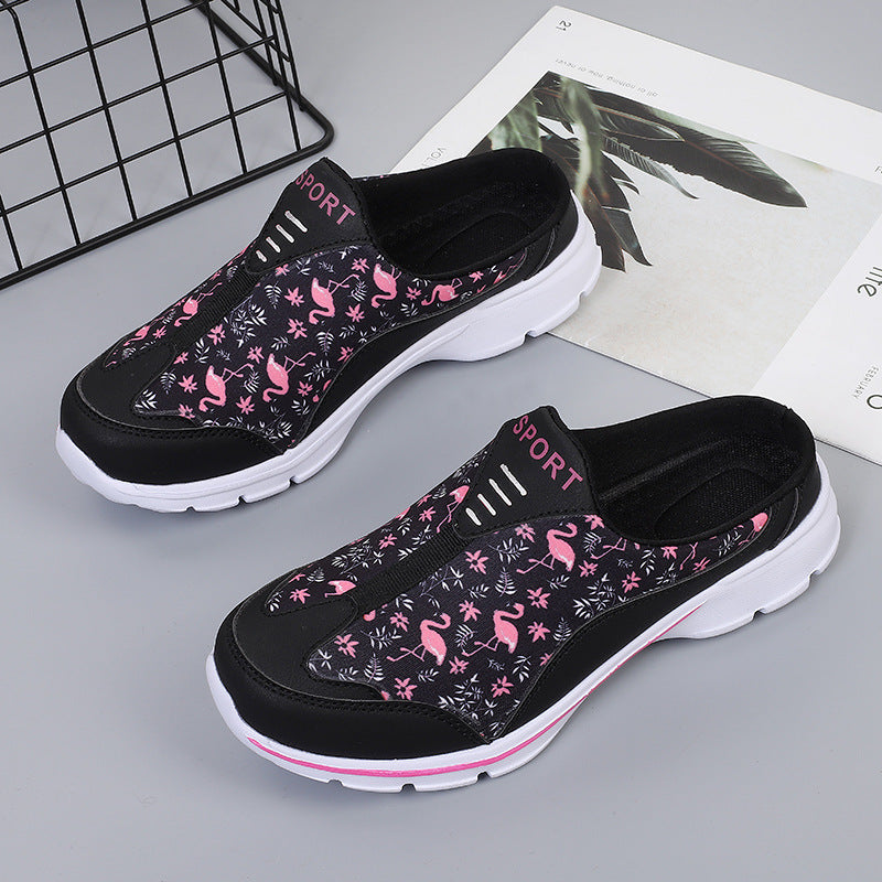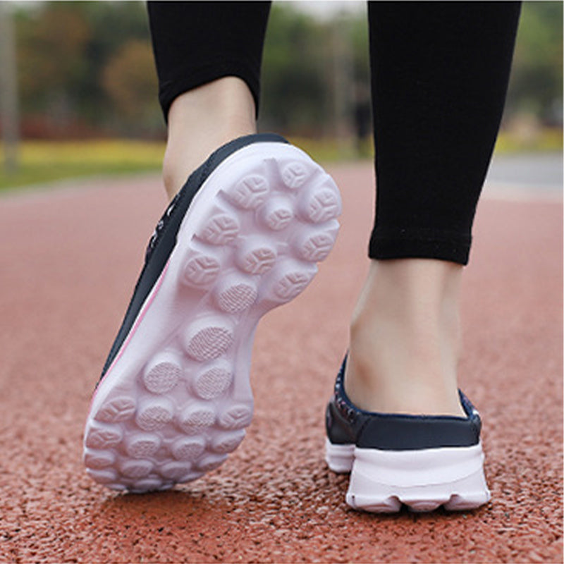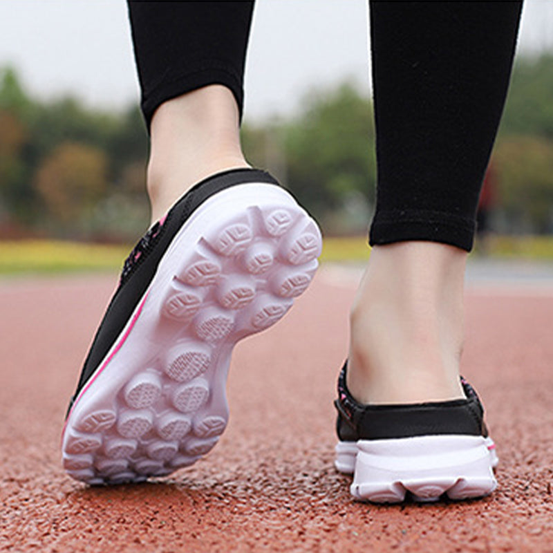 A női hálós félujjú papucsok sport/alkalmi használatra tervezett lábbelik. Általában légáteresztő hálós felsőrésszel rendelkeznek , amely lehetővé teszi a szellőzést, és segít a lábak hűvös és száraz tartásában. A papucs orra szabaddá válik, így kényelmes és kényelmes módot biztosít a fel- és levételre. A zokni kialakítása arra utal, hogy a papucs nem fedi be a teljes lábfejet, így a sarok szabadon marad. Ezek a papucsok rugalmas, tartós talppal is rendelkezhetnek a nagyobb kényelem és támogatás érdekében.