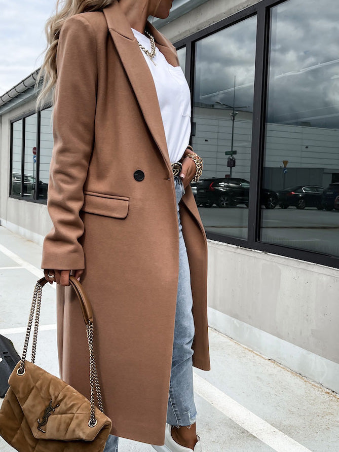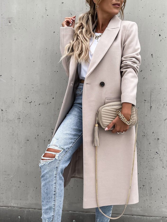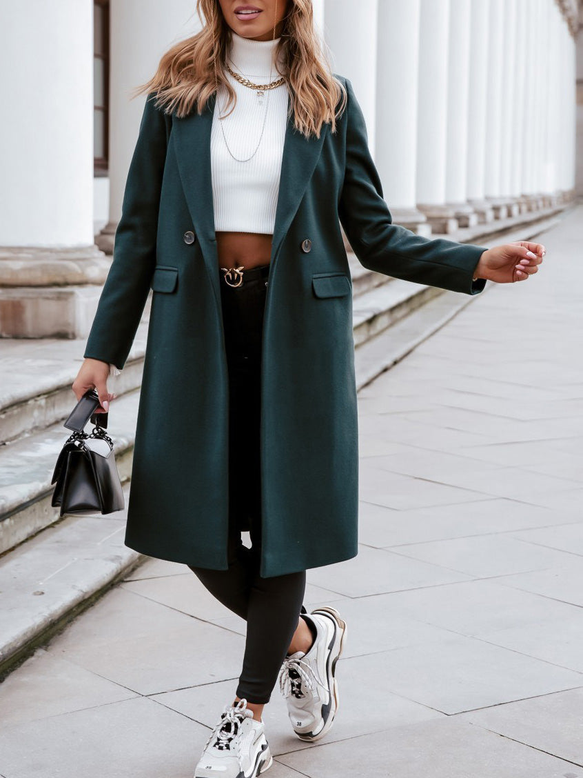 Női gombos kabátok, hosszú gyapjúkabátok, hosszú ujjal
