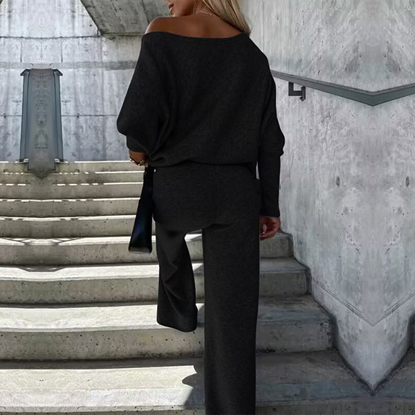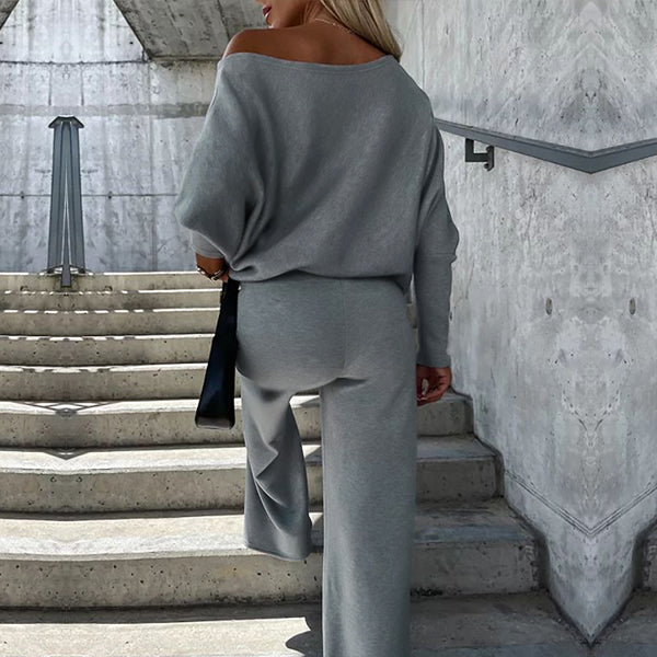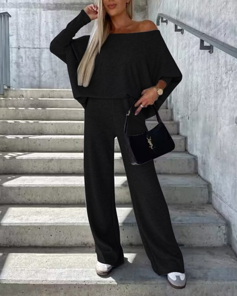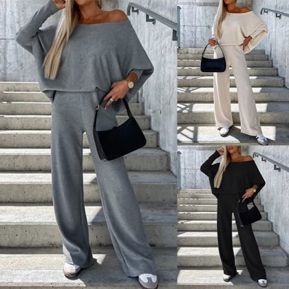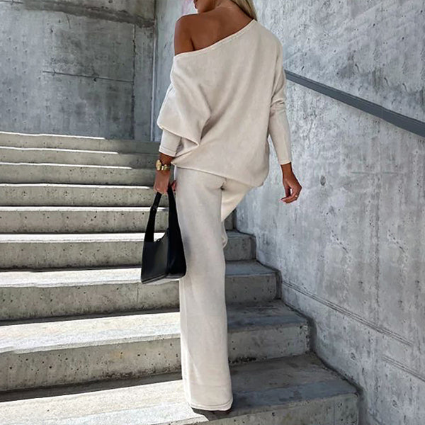 Egyszínű női öltöny kerek nyakkal és hosszú ujjal