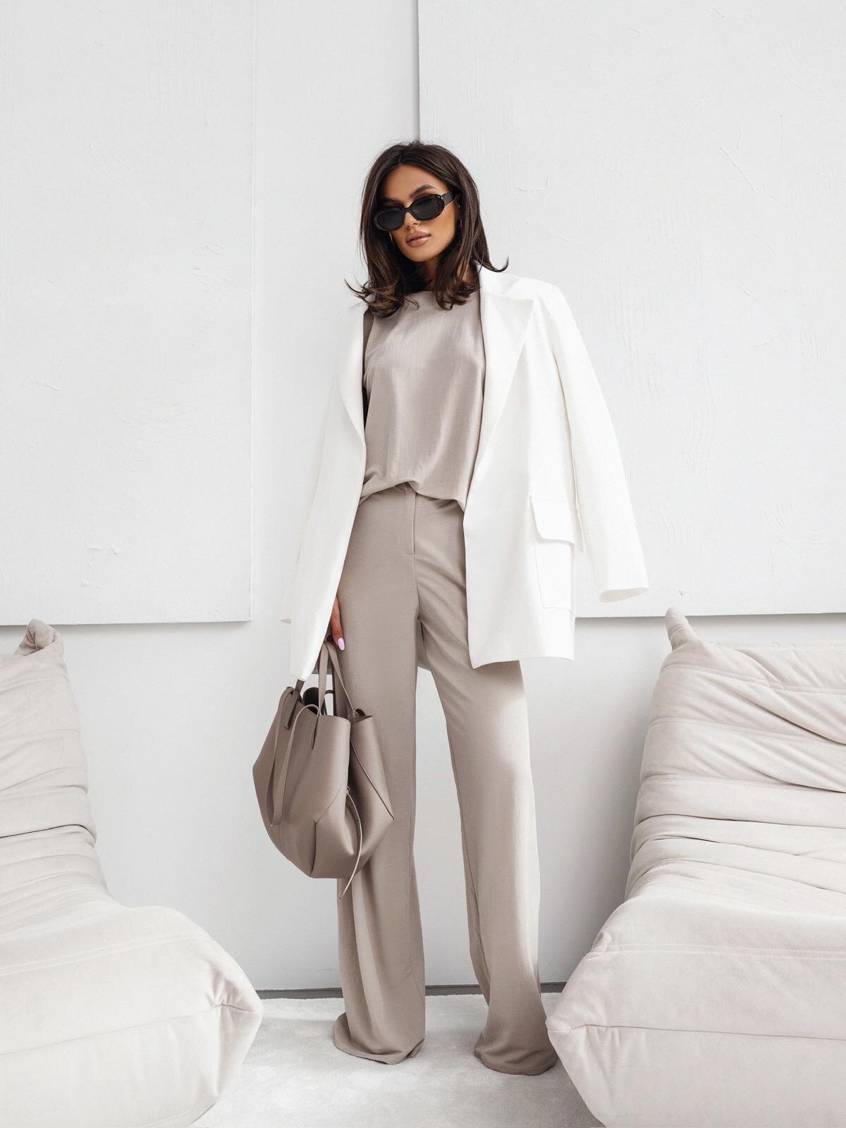 Sokoldalú és könnyen kombinálható - tökéletes hétköznapokra és formális alkalmakra egyaránt, ez az összeállítás viselhető magas sarkú cipővel vagy hétköznapilag sportcipővel, így teljessé varázsolva.